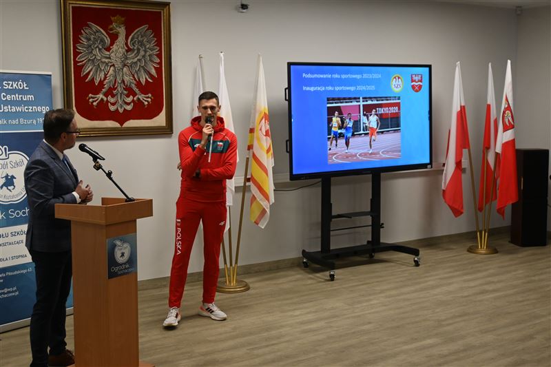 W międzyczasie działo się naprawdę wiele - podsumowano ubiegły sportowy rok szkolny, ale jednocześnie zainaugurowano nowy - w sporcie 2024/2025. W sali „Ogrodnika” nie mogło zabraknąć znamienitych gości. Samorząd powiatowy reprezentowali: Andrzej Kierzkowski, przewodniczący Rady Powiatu oraz Anna Pawłowska, wicestarosta sochaczewski. Powiatowy Szkolny Związek Sportowy reprezentował jego prezes Mirosław Domińczak i organizujący wszystkie szkolne rozgrywki na szczeblu powiatowym, międzypowiatowym, ale też w ramach Mazowieckich Igrzysk Młodzieży Szkolnej - sekretarz PSZS Zenon Grąbczewski. Gospodarzem uroczystości był dyrektor ZS RCKU Marek Wernicki.