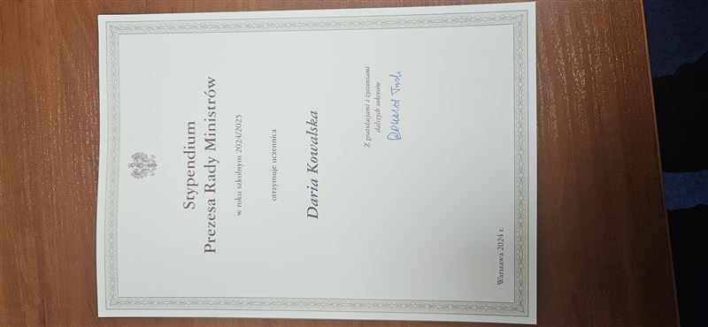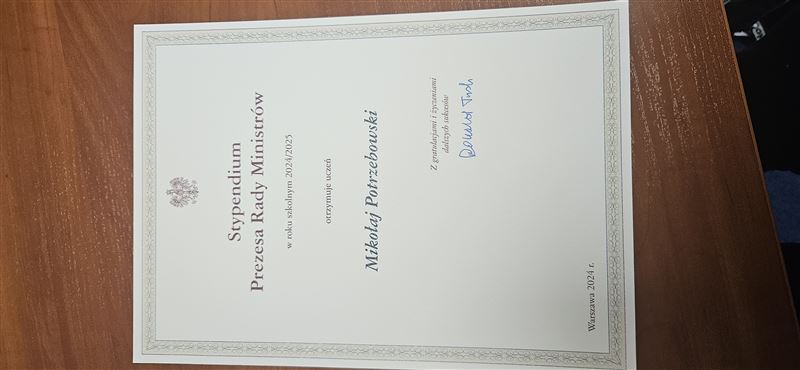 Podobnie jak w latach poprzednich, w bieżącym roku szkolnym duża grupa uczniów „Iwaszkiewicza” została uhonorowana stypendiami, które nagrodziły wysiłek naszych stypendystów i mamy nadzieję wciąż motywują ich do dalszej edukacji i rozwoju osobistego. Najważniejsze w roku szkolnym 2024/2025 wyróżnienie - Stypendium Prezesa Rady Ministrów - otrzymali z rąk Mazowieckiego Kuratora Oświaty 27 listopada 2024 roku w Szkole Głównej Handlowej w Warszawie Mikołaj Potrzebowski z Liceum Ogólnokształcącego oraz Daria Kowalska z Technikum. Warto przypomnieć , że w październiku Starosta Sochaczewski - Jolanta Gonta przyznała 24 uczniom naszej szkoły stypendia za wybitne wyniki w nauce i wybitne osiągnięcia. Za wybitne wyniki w nauce otrzymali je: Ignacy Jaśkiewicz, Maja Miecznikowska, Karolina Antoniak, Magdalena Radwańska, Maciej Burakowski, Weronika Ignatowska, Viktoryja Neiman, Adam Rychliński, Kinga Kujawa z Liceum Ogólnokształcącego oraz Julia Owczarek, Maja Kalinowska, Nikola Ufa, Julia Wojtczak, Zuzanna Zięcina, Martyna Małecka, Katarzyna Bogusiewicz, Mateusz Jaworski, Aleksandra Kołodziejczak, Marta Łukaszewicz, Vladyslav Moskalenko, Maria Kubiak, z Technikum. Z kolei za wybitne osiągnięcia wyróżnieni zostali: Julia Błaszczyk i Wiktor Borowiec z LO oraz Maciej Wojciechowski z Technikum. Wszystkim stypendystom, ich rodzicom i nauczycielom serdecznie gratulujemy i życzymy dalszych sukcesów edukacyjnych.
