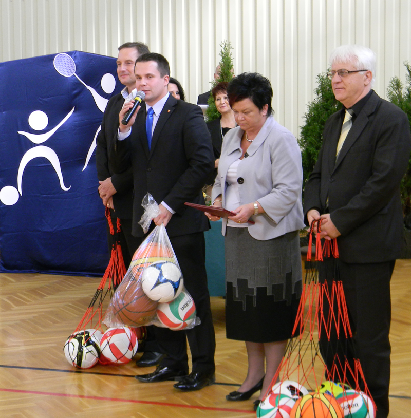 W tym ważnym wydarzeniu tak dla lokalnej społeczności, jak i władz gminy uczestniczyła przewodnicząca Rady Powiatu Halina Pędziejewska oraz wicestarosta Janusz Ciura, którzy na ręce dyrektor szkoły złożyli wraz z listem gratulacyjnym komplet piłek do gry.