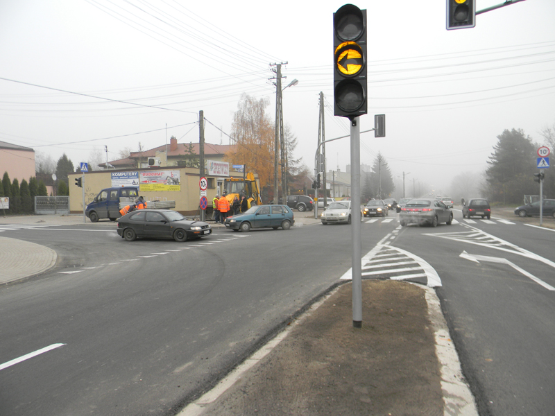 Przypomnijmy. Wykonawca rozpoczął roboty drogowe 27 sierpnia br. w ramach ostatniego już etapu przebudowy skrzyżowania. Prace zrealizowane zostały na odcinku 638 m, a zakres robót, obejmował m.in. budowę chodnika, krawężników, nowej nawierzchni asfaltowej oraz oznakowania pionowego i poziomego. Jednak kluczowym punktem całej realizacji inwestycji była nowa sygnalizacja świetlna.