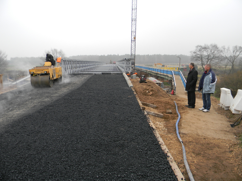 - Obecnie most wygląda jak ogromna metalowa konstrukcja łącząca dwa brzegi rzeki, na bieżąco wykonywana jest na moście nawierzchnia ortotropowa, po której będzie można się poruszać. Wykonywane są około 50-metrowe dojazdy po obu stronach, które będą stanowić jedną całość z mostem. Wykonywana jest na nich podbudowa z kruszywa łamanego, a w następnej kolejności ułożona będzie nawierzchnia bitumiczna – dodaje Starosta Tadeusz Koryś.