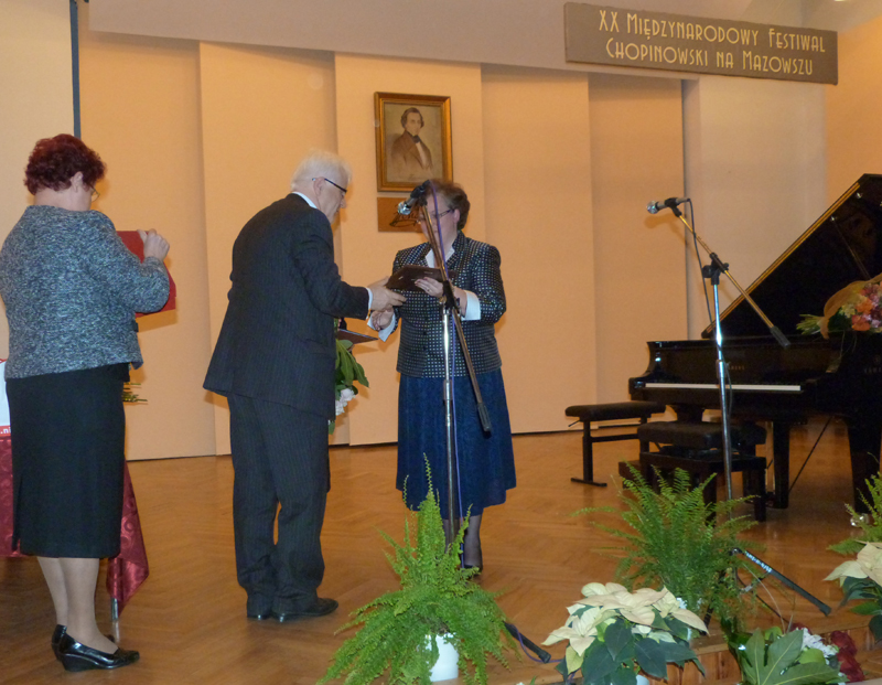 Festiwal Chopinowski na Mazowszu od pierwszych lat swego istnienia odbywa się w Sochaczewie szczególnie z uwagi na bliskość miejsca otoczonego czcią całego świata, czyli Żelazowej Woli jako miejsca urodzenia Fryderyka Chopina. Jest to zdecydowanie wyjątkowy festiwal podczas, którego jury ocenia wartości artystyczne i grę uczestników. Udział biorą uczniowie szkół muzycznych z kraju i zagranicy a w tegorocznej edycji było łącznie 61 osób. Po kilkudniowych przesłuchaniach jury dokonało jak co rok wyboru kilkunastu z nich do udziału w uroczystym Koncercie Laureatów, w czasie którego wręczane są nagrody i wyróżnienia. Tegoroczny Festiwal trwał od 17 listopada a zakończy się 22. Zaś 21 listopada w Państwowej Szkole Muzycznej odbył się uroczysty koncert laureatów, podczas którego najwybitniejszy młody artysta otrzymał roczne stypendium starosty sochaczewskiego. Tegorocznemu laureatowi Aleksandrowi Krawczykowi stypendium wręczał obecny na koncercie wicestarosta Janusz Ciura. Przekazał on również pamiątkowe grawerowane patery na ręce dyrektor Miejskiego Ośrodka Kultury w Sochaczewie Haliny Pędziejewskiej oraz dyrektor Państwowej Szkoły Muzycznej w Sochaczewie – Joannie Niewiadomskiej-Kocik z okazji jubileuszu XX-lecia oraz w podziękowaniu za wspaniałą organizację tego wydarzenia – Bardzo nas cieszy fakt, że corocznie bierze udział w przesłuchaniach tak wiele osób uzdolnionych artystycznie, to świadczy o tym, że młodzież ma duszę o co w tych czasach jednak trudno. Komisja nie miała łatwego zadania, bo kandydaci reprezentowali naprawdę wysoki poziom. Serdecznie gratuluję wszystkim uczestnikom talentu, a tegorocznemu laureatowi uzyskanego stypendium. Jednocześnie dziękuję organizatorom za wspaniale przygotowany Festiwal – komentuje wicestarosta Janusz Ciura.