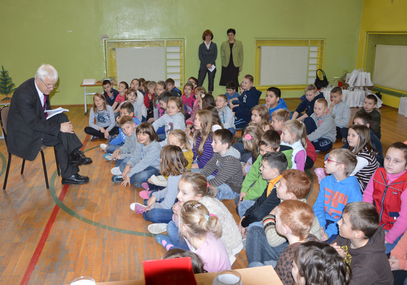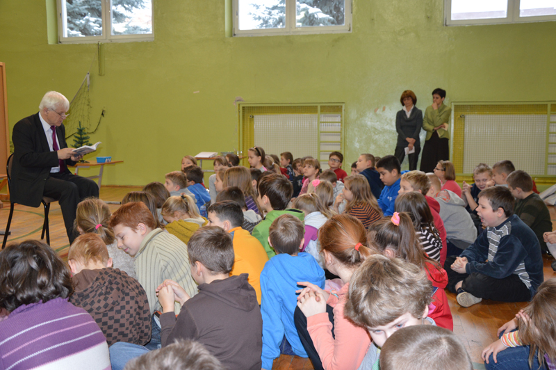 Wychowawczynie tych klas, tj. Elżbieta Tonecka, Małgorzata Wylot i Małgorzata Żakowska realizują od trzech lat projekt pn. „Z książką za pan brat”. W ramach cyklicznych spotkań uczniów odwiedzają m.in. strażacy, policjanci, którzy czytają dzieciom książki a następnie wspólnie rozmawiają na poruszane w niej tematach. Tak było i tym razem. Wicestarosta przeczytał dzieciom fragment książki „Dzieci z Bullerbyn” Astrid Lindgrenm. Młodzież z zaciekawieniem słuchała przygód bohaterów. Następnie dzieci musiały odpowiedzieć na pytania związane z książką.