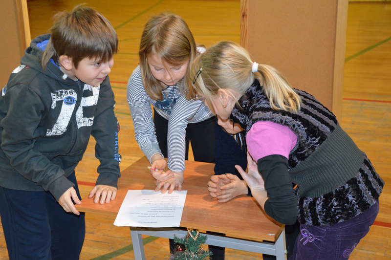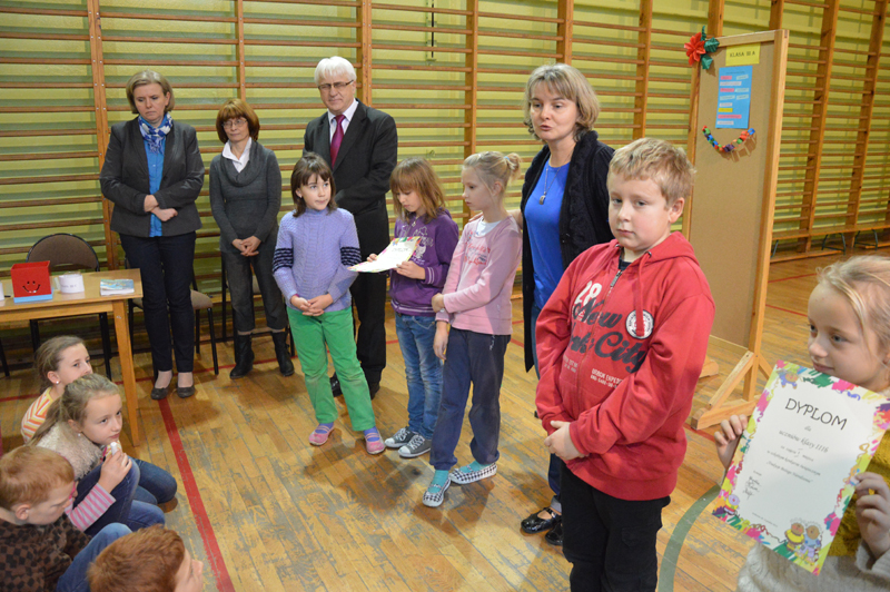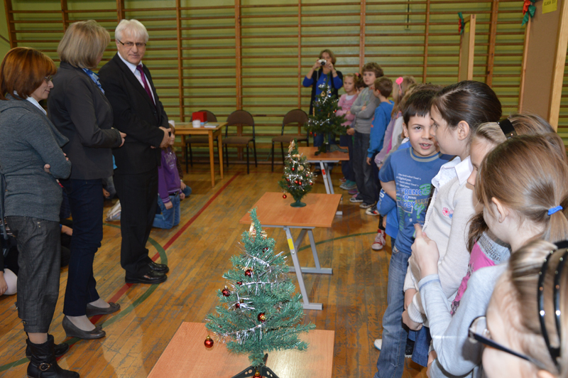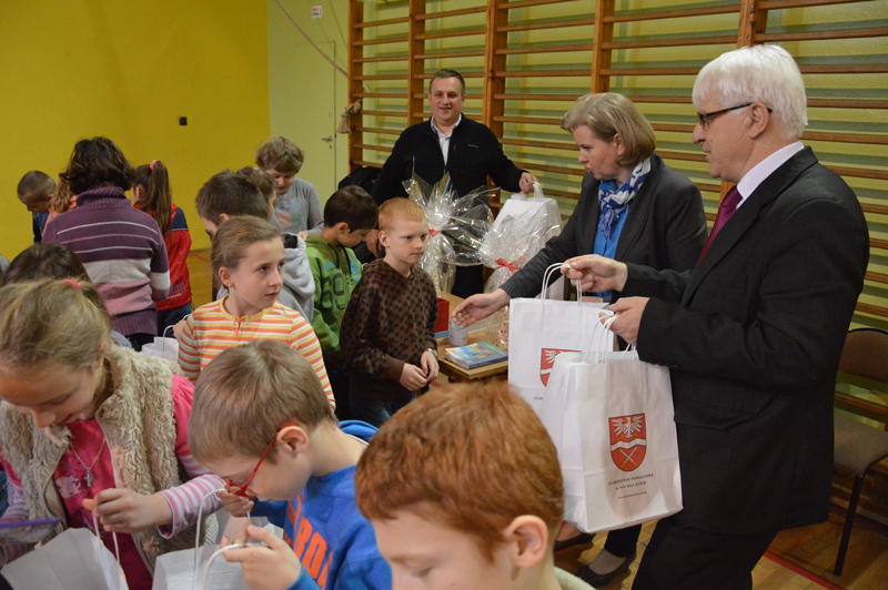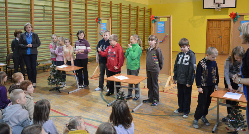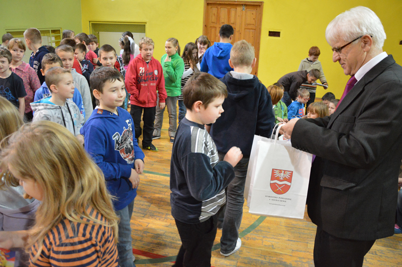 Jednak najwięcej emocji wywołał przeprowadzony konkurs, gdzie o punkty w różnych kategoriach rywalizowały ze sobą drużyny każdej z klas. Najwięcej punktów a tym samym pierwsze miejsce zajęła klasa III B. Miłym zaskoczeniem zarówno dla nauczycieli i samych uczniów była niespodzianka przygotowana na koniec spotkania przez wicestarostę Janusza Ciurę. Otóż, wicestarosta wszystkim z osobna wręczył mikołajkowe upominki, w każdym zestawie była książka oraz słodycze. Drobne upominki otrzymały też panie nauczycielki, wychowawczynie. W spotkaniu udział wzięła także wicedyrektor szkoły Małgorzata Dobrzyńska.