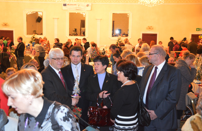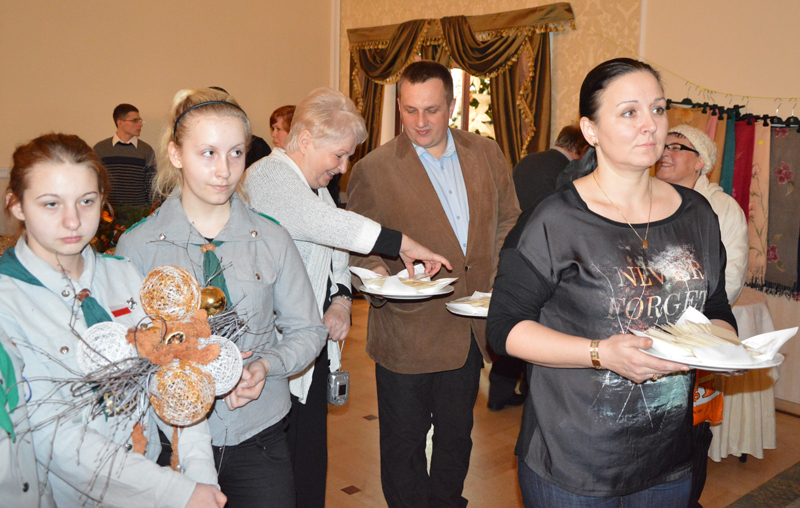 Zwiedzający kupując prezentowane przez wystawców wyroby mogli także wesprzeć dzieci z Domu Dziecka w Giżycach, uczniów Zespołu Szkół w Erminowie a także podopiecznych Warsztatów Terapii Zajęciowej, którzy mieli swoje stosika z ozdobami. Wystawili się również pensjonariusze z Domu Pomocy Społecznej w Młodzieszynie, dziewczęta z Młodzieżowego Ośrodka Wychowawczego w Załuskowie oraz harcerze. A wszystkim obecnym czas umilały śpiewane na żywo kolędy w wykonaniu artystów z Teresińskiego Ośrodka Kultury. W imieniu starosty sochaczewskiego zadbano również o opłatek dla wszystkich jako wigilijny symbol pojednania i znak przyjaźni oraz podkreślenie doczesnego charakteru świątecznych życzeń.