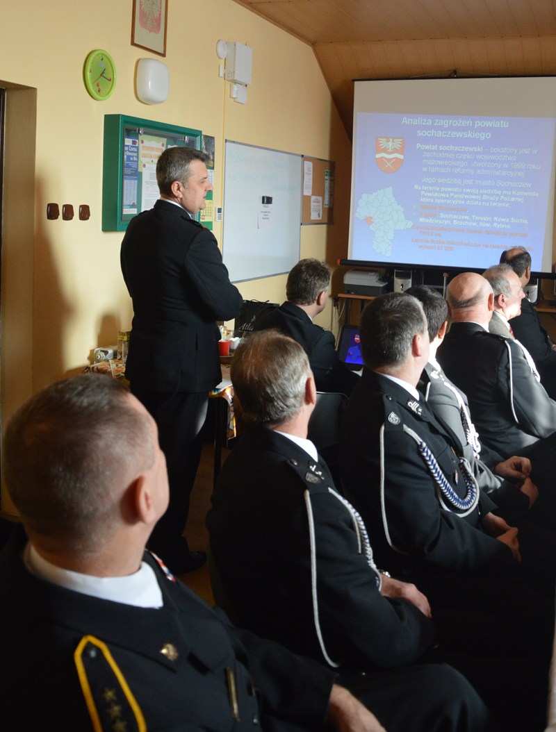 Na wstępie spotkania komendant powiatowy PSP w Sochaczewie st. bryg. Paweł Kubiak zaprezentował statystyki zdarzeń z roku 2012 dotyczące interwencji straży pożarnej jak również przedstawił zadania kontrolno-rozpoznawcze, szkolenia, finanse i logistykę straży pożarnej. Ze statystyk wynikało, iż w stosunku do roku ubiegłego nastąpił wzrost ilości pożarów aż o 184. Były one głównie spowodowane wiosennym wypalaniem traw. Wspomniał również o obecnie wprowadzanej przez Wojewodę Mazowieckiego kampanii społecznej „NIE! dla wypalania traw”.