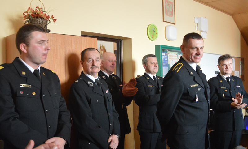 Osobnym punktem odprawy było uroczyste pożegnanie i podziękowanie dla odchodzącego ze służby po 34 latach zastępcy komendanta, aspiranta sztabowego Dariusza Wypierowskiego. Komendant Powiatowy P. Kubiak podziękował mu w imieniu wszystkich pracowników komendy za sumienną, rzetelną służbę. Za pracę w straży pożarnej na rzecz społeczeństwa powiatu sochaczewskiego i ościennych podziękował również starosta sochaczewski Tadeusz Koryś. W imieniu wójtów słowa wdzięczności przekazał Mirosław Orliński. Od wszystkich oprócz podziękowań otrzymał pamiątkowe prezenty.