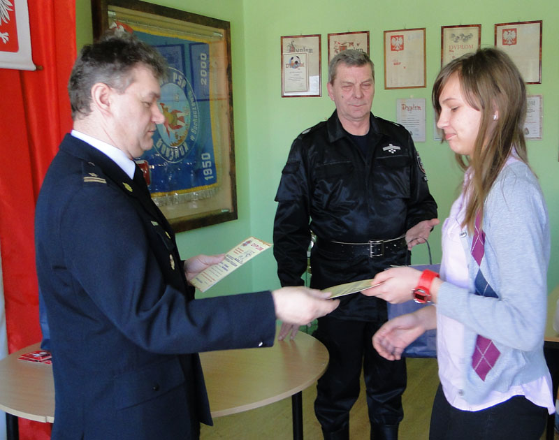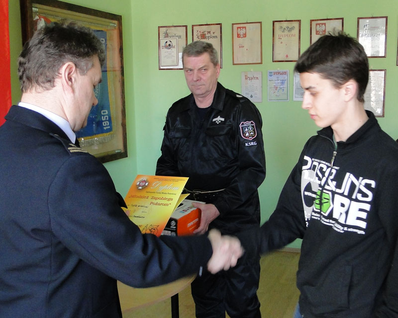 Wszystkim uczestnikom konkursu zastępca komendanta KP PSP w Sochaczewie mł. bryg. Mirosław Gorzki wręczył okolicznościowe dyplomy oraz nagrody i gratulacje. Zwycięzcy otrzymali nagrody rzeczowe ufundowane przez starostę sochaczewskiego Tadeusza Korysia, Komendę Powiatową Państwową Straż Pożarną w Sochaczewie oraz ZOSP RP w Sochaczewie.