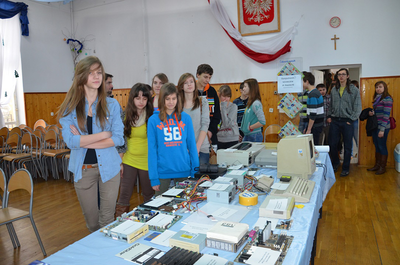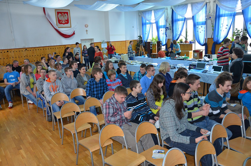 Potem wszyscy spotkali się w świetlicy szkolnej, gdzie trwała towarzysząca Dniu Otwartemu wystawa sprzętu multimedialnego i fotograficznego „Dawniej & Dzisiaj”. Podczas spotkania zaprezentowano gimnazjalistom ofertę edukacyjną Zespołu Szkół, nauczyciele odpowiadali na zadawane pytania. Przyszłych uczniów szczególnie interesowały rodzaje techników, a są tu m.in. technikum mechanizacji, agrobiznesu, logistyczne, informatyczne, mechanizacji rolnictwa. Część z nich przyciągnęła oferta liceum ogólnokształcącego o nachyleniu dziennikarskim.