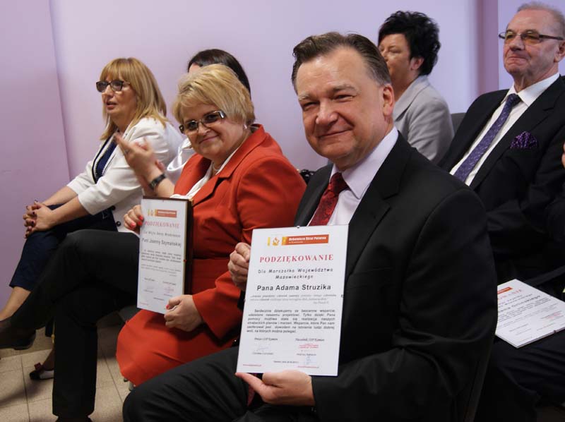 Z wnioskiem o nadanie odznaki wystąpiła jednostka ochotnicza z Kamiona, bo warto wspomnieć, że Adam Struzik to strażak ochotnik i członek Zarządu Wojewódzkiego oraz Zarządu Głównego Związku Ochotniczych Straży Pożarnych Rzeczypospolitej Polskiej. Marszałek Struzik akt nadania oraz odznaką honorowego obywatela Gminy Młodzieszyn odebrał z rąk wójt gminy Joanny Szymańskiej i przewodniczącego rady Gminy Wiesława Olczaka.