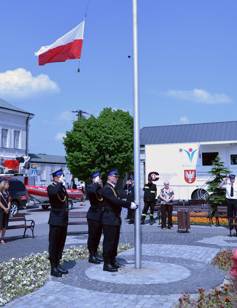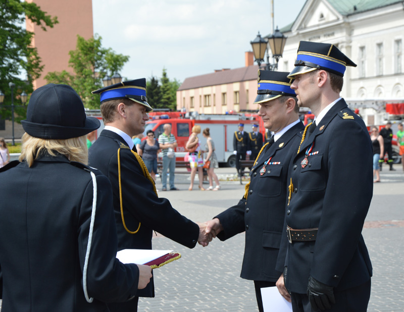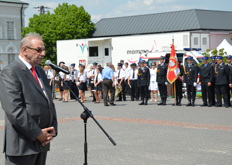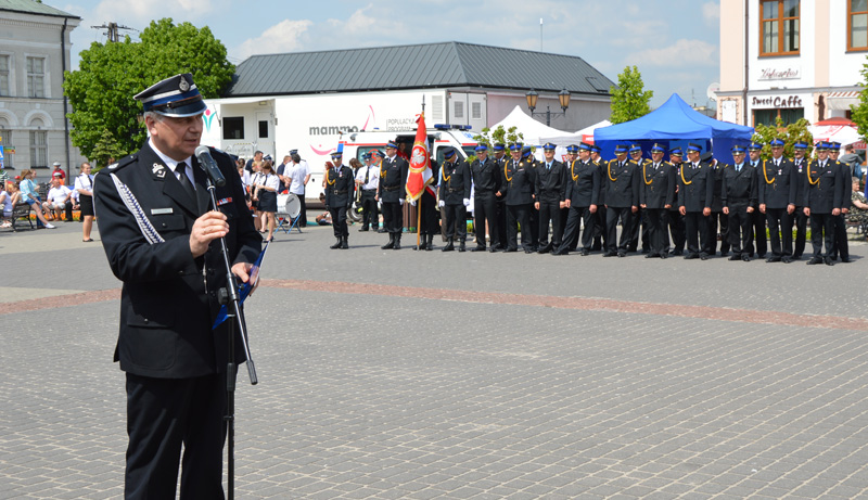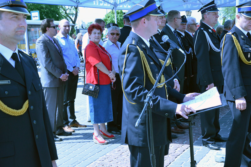 W sobotę 18 maja br. od rana na placu Kościuszki odbyło się święto straży pożarnej. Były awanse, wyróżnienia, parada oddziałów, gratulacje i podziękowania. Wyróżniono blisko czterdziestu funkcjonariuszy, zawodowych oraz z Ochotniczych Straży Pożarnych.