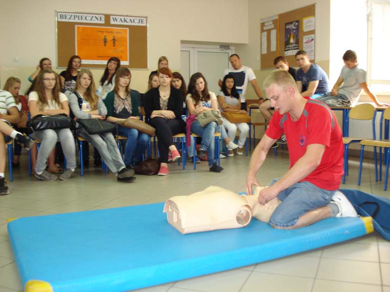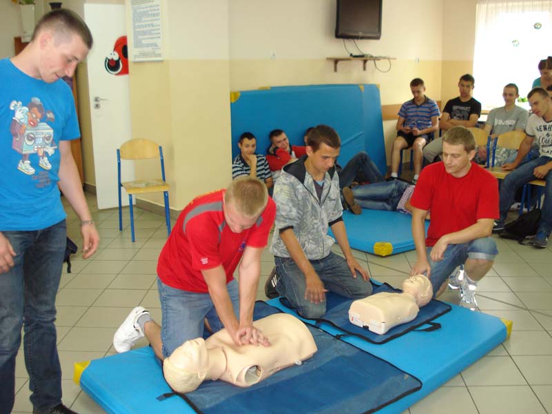 18 czerwca w świetlicy szkolnej odbyło się właśnie takie szkolenie. Zajęcia prowadzone były przez ratowników sochaczewskiego oddziału WOPR – Patryka Sobieraja i Dariusza Stefaniaka – a więc fachowców, którzy dzielili się swoją wiedzą i umiejętnościami. Uczniowie ZS CKP mieli nie tylko pokaz udzielania pomocy ale również zajęcia praktyczne. Można było przećwiczyć już posiadane umiejętności albo sprawdzić te nabyte podczas szkolenia. Jego organizatorki Ewa Chaber i Anna Świnoga do udziału w szkoleniu zachęcały przede wszystkim uczniów klas pierwszych, zwłaszcza tych, którzy w takich szkoleniach nigdy nie uczestniczyli. Miejmy nadzieję, że akcja „Bezpieczne wakacje” pomoże uniknąć groźnych i nieprzyjemnych sytuacji i wakacje będą wyłącznie okazją do wypoczynku.