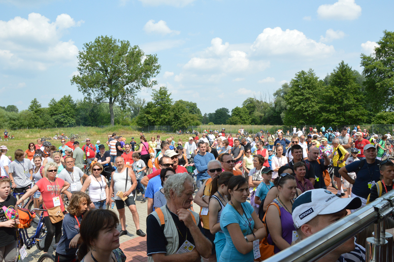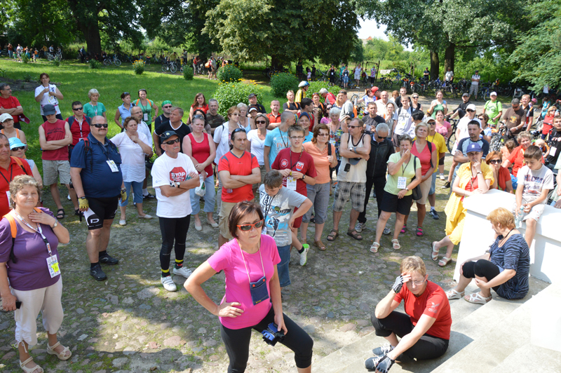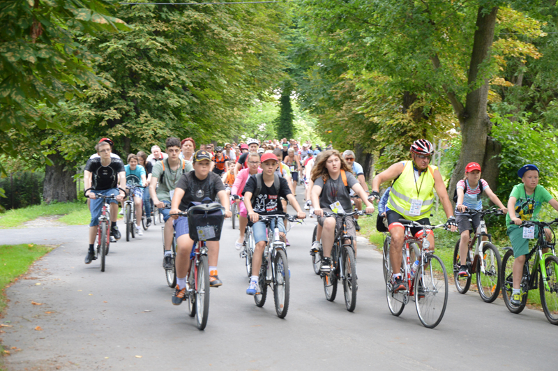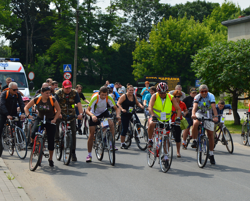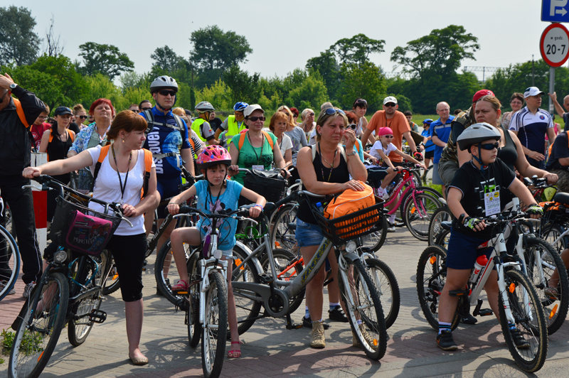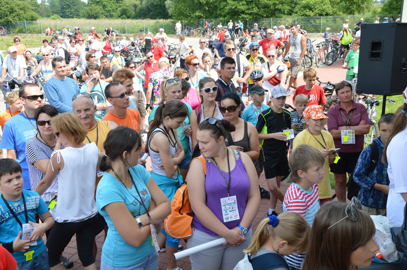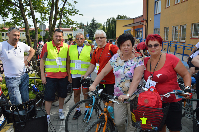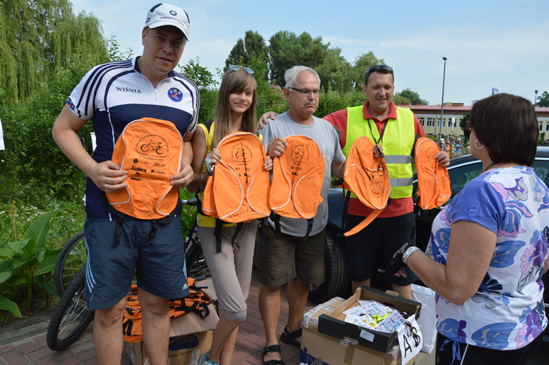 Już o godzinie 9.00 zaczęli zjeżdżać pierwsi rowerzyści na star rajdu, który organizator przewidział tradycyjnie przed budynkiem Starostwa Powiatowego. Sprawnie rozdano wszystkim identyfikatory ze smyczami i odblaskami. Pierwsze 500 osób zapisanych na rajd otrzymało okolicznościowe plecaki. Przed startem wszystkich przywitał wicestarosta Janusz Ciura i przewodnicząca Rady Powiatu Halina Pedziejewska oraz dyrektor Wydziału Promocji, Kultury, Sportu i Turystyki Marcin Podsędek.