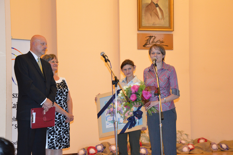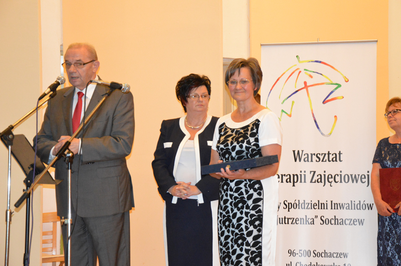 Szczególnie spontanicznie przyjęto przemówienie Magdaleny Osińskiej, kierownik WTZ, która przywołała wspomnienia z lat pracy placówki. Wraz z prezesem Zarządu Spółdzielni Inwalidów „Jutrzenka” Krzysztofem Krzywonos podziękowali przyjaciołom, pracownikom, warsztatu oraz uczestnikom i ich rodzinom, przedstawili również jej założycieli. Pani kierownik nie kryła łez wzruszenia. – Przepraszam państwa za moje łzy, starałam się trzymać dzielnie, lecz to co robie zawodowo to nie tylko moja praca, to moje życie i nie da się do tego podchodzić bez emocji. Dziękuję za wyróżnienie, jakim obdarował mnie starosta i wszystkie pozostałe osoby blisko związane z naszą placówką – dziękowała Magdalena Osińska.