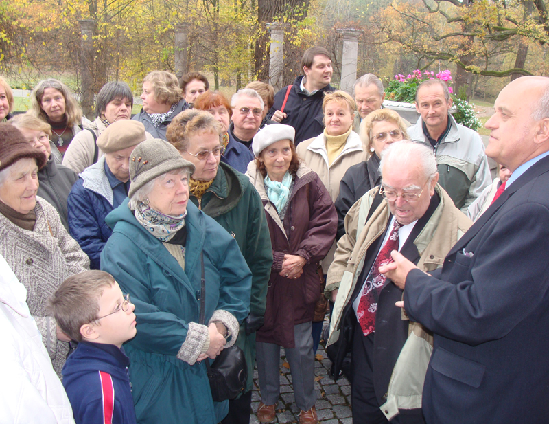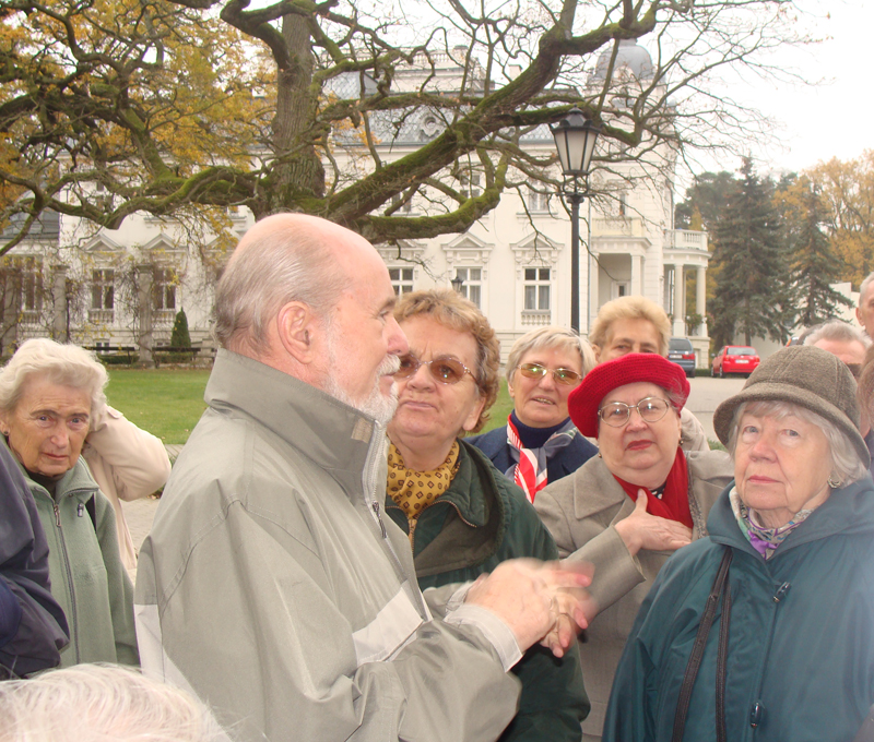 145. Spacer z Syrenką do Teresina trwał cztery godziny a rozpoczął się od zwiedzenie Ośrodka Rehabiliracyjno-Szkoleniowego KRUS mieszczącego się w Pałacu ks. Druckiego-Lubeckiego. Tu gości przywitał dyrektor Ośrodka Maciej Stawicki, zastępca wójta Teresina Marek Jaworski oraz pracownicy Wydziału Promocji Starostwa Tadeusz Jaworski i Anna Syperek. Gospodarz obiektu oprowadził gości po pałacu i przylegającym do niego kompleksu parkowego, opowiadając historię tego wspaniałego miejsca.