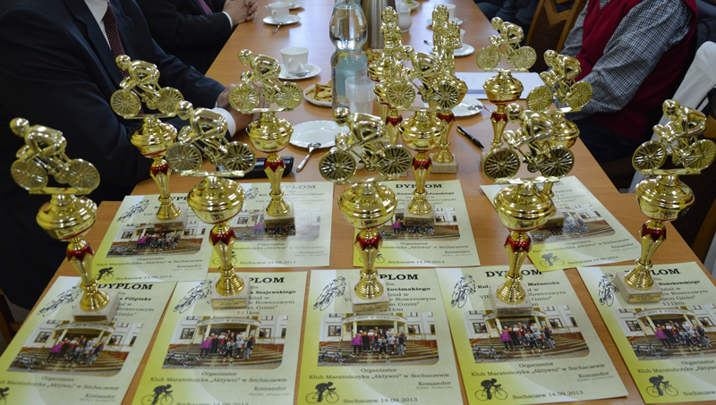 22 października kolarze spotkali się ze starostą Tadeuszem Korysiem i wicestarostą Januszem Ciurą, którzy uhonorowali maratończyków okolicznościowymi, pamiątkowymi pucharami i dyplomami. - Propagujecie aktywny i zdrowy wypoczynek a tym samym promujecie nasz powiat, na czym wszystkim nam zależy. Zawsze chętnie będziemy wspierać tego typu przedsięwzięcia, o czym mogą świadczyć dotychczas organizowanie imprezy rekreacyjne, w tym rowerowe - mówił starosta T. Koryś. W trakcie spotkania uczestnicy maratonu rozmawiali o trasie i dzielili się swoimi spostrzeżeniami z przejazdu, snując plany na kolejne rowerowe wyczyny.