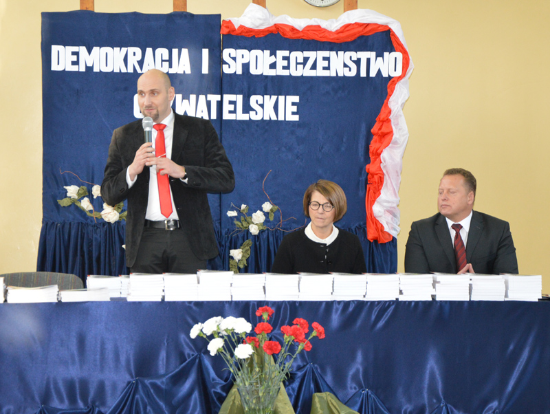 W spotkaniu uczestniczył członek Zarządu Powiatu Przemysław Gaik, który wyraził nadzieję, iż spotkanie przełoży się na aktywność młodzieży w demokratycznym społeczeństwie. - Myślę, że to spotkanie będzie dla was inspiracją do bezpośredniego zaangażowania się w życie społeczne – mówił na wstępnie P. Gaik. Gości powitał dyrektor ZSO Dariusz Miłkowski.