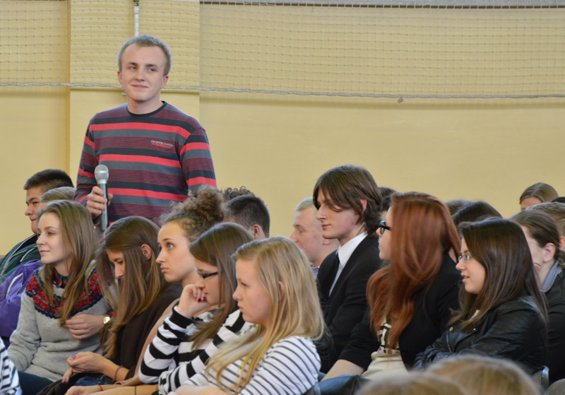 Uczniowie mieli okazję porozmawiać na temat ich roli w demokratycznym społeczeństwie oraz zadać nurtujące pytania. Byli dobrze przygotowani do dyskusji. Pojawiły się pytania o najnowsze wydarzenia sceny politycznej, fundusze unijne, sytuację polskich rolników, a także o to, co dotyczy młodzieży w największym stopniu, czyli edukację i rynek pracy. Pani poseł zachęciła do dynamicznego tworzenia swojego CV – aby poza studiami aktywnie korzystać z możliwości odbywania stażu i praktyk oraz angażować się choćby w wolontariat, gdyż jak stwierdziła „nic nie zastąpi doświadczenia, wiedzy i praktyki”.