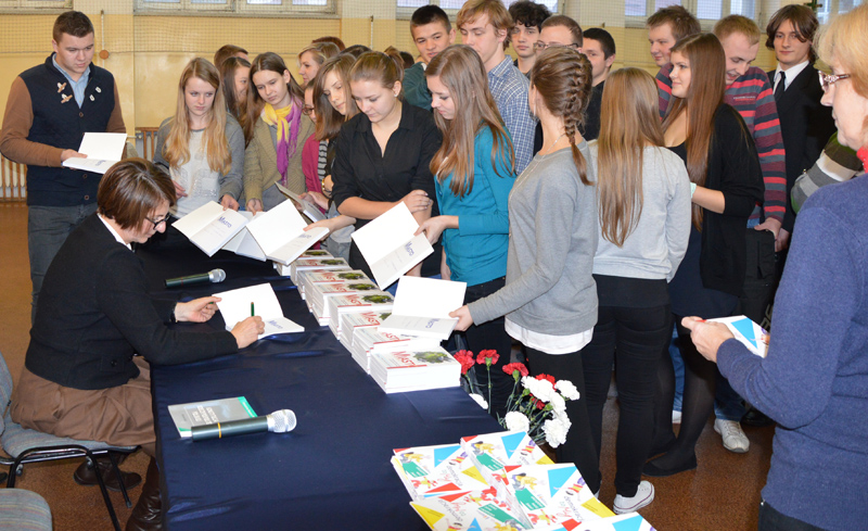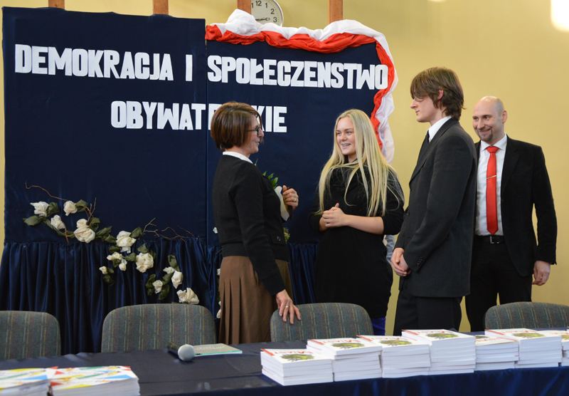 - Było to bardzo twórcze spotkanie, które utwierdziło mnie w przekonaniu, że polska młodzież myśli samodzielnie, wypowiada swoje zdanie bez obaw, zadaje pytania o kwestie, które ją nurtują. Dlatego trzeba się bardzo starać aby nie zawieść ich oczekiwań – mówiła po spotkaniu J. Pitera, która wraz z Przemysławem Gaikiem przekazała książki z dedykacją dla każdego ucznia. Gimnazjaliści dostali książkę o demokracji „Demokracja to MY”, licealiści zaś „Miasto w działaniu”. Spotkanie zakończyło się pamiątkowym wpisem pani poseł do szkolnej kroniki.