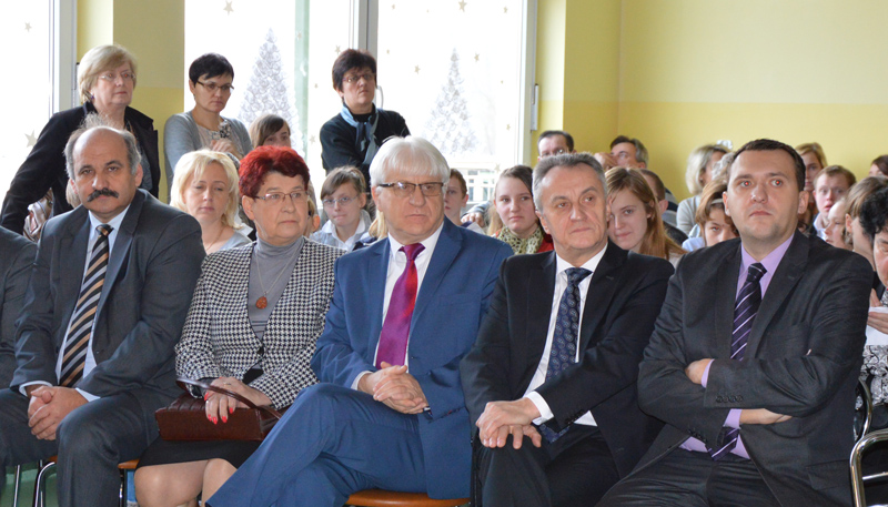 Po części artystycznej nadszedł czas życzeń. Rozpoczął ksiądz proboszcz, wygłaszając Słowo Boże. W imieniu Rady Powiatu życzenia wszelkiej pomyślności, zdrowia i spokoju złożyła Jolanta Popiołek, wiceprzewodnicząca Rady. Wicestarosta Janusz Ciura przekazał życzenia świąteczno-noworoczne od starosty sochaczewskiego Tadeusza Korysia i Zarządu Powiatu. Podkreślił przy tym pełną poświęcenia i trudu pracę nauczycieli, ale też uczniów, życząc im udanego wypoczynku w czasie ferii. Życzenia złożyli również między innymi wójtowie gmin: Rybna – Grzegorz Kropiak, Nowej Suchej – Maciej Mońka oraz Młodzieszyna – Joanna Szymańska. Dyrektor Domu Pomocy Społecznej Justyna Nowak-Sobotta przy okazji życzeń podziękowała szkole za owocną, aktywną współpracę. W spotkaniu udział wzięli także dyrektor Wydziału Promocji, Kultury, Sportu i Turystyki Marcin Podsędek, dyrektor Powiatowego Zespołu Edukacyjnego Bogusław Bęzel, kierownik Warsztatu Terapii Zajęciowej Magdalena Osińska, przedstawiciele miasta.