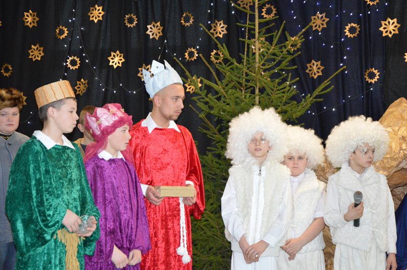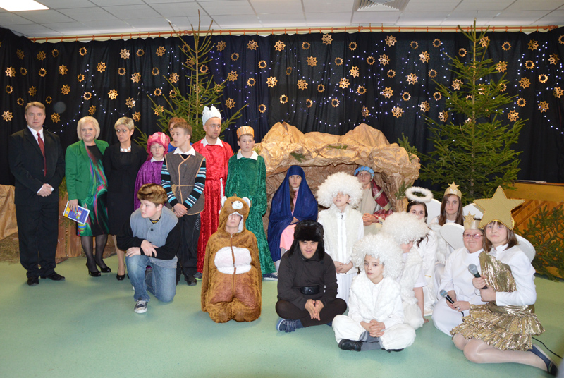 Po powitaniu wszystkich zaproszonych gości przez dyrektor Hannę Milcarz scena należała do uczniów, którzy przygotowali jasełka. Piękna scenografia, oprawa muzyczna i występ dzieci wzbudziły zachwyt widowni, o czym świadczyły gromkie brawa na zakończenie przedstawienia.