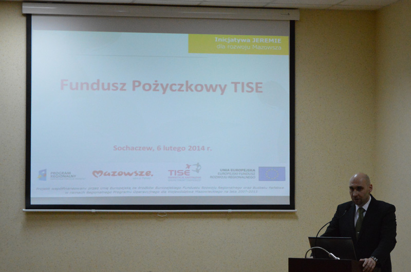 Ze szczegółami inicjatywy JEREMIE oraz samą firmą TISE zapoznał zgromadzonych Cezary Górka, dyrektor ds. sprzedaży i projektów unijnych. W skrócie przedstawił historię Towarzystwa Inwestycji Społeczno-Ekonomicznych, które już od ponad 20 lat prowadzi działalność finansową na rzecz rozwoju przedsiębiorczości. Obecnie specjalizuje się w finansowaniu małych i średnich przedsiębiorstw i organizacji pozarządowych działających w Polsce. Fundusze na ten cel pochodzą ze środków własnych oraz od 2012 r. także ze środków powierzonych przez Bank Gospodarstwa Krajowego w ramach realizacji między innymi Inicjatywy JEREMIE w województwie mazowieckim.
