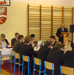 Podziękował za współpracę staroście, Zarządowi i dyrektorom jednostek i inspekcji podległych powiatowi. Pogratulował wyników i osiągnięć, w tym przeprowadzonych inwestycji, a także kondycji finansowej. A składając życzenia świąteczne, życzył kontynuacji jak największych dokonań, nie tylko dla całego regionu, ale i poprawy życia społeczeństwa.