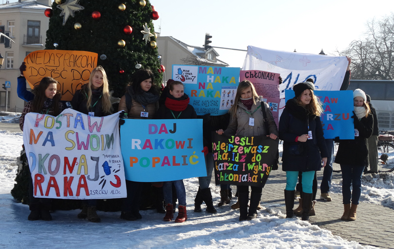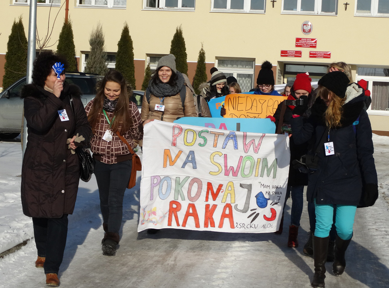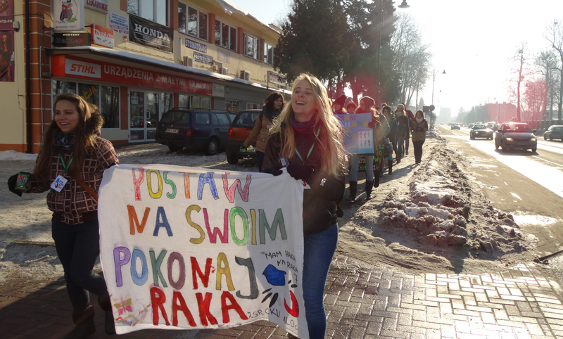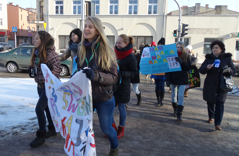 Realizacja programu odbywa się kilku etapowo. – Na wstępie uczniowie są zapoznawani z podstawową wiedzą dotyczącą chorób nowotworowych, ewentualnymi objawami schorzeń i znaczeniem profilaktyki. Tę wiedzę mają przekazać jak najszerszemu gronu społeczności lokalnej. Pięcioosobowy zespół przygotował prezentację multimedialną, która trafiła do uczniów w różnych klasach oraz stworzyli plakaty i ulotki. We wtorek 4 lutego licealiści zorganizowali kolorowy masz ulicami miasta promujący kampanię „Mam Haka na raka”. Dodatkowo młodzież zachęcała swoich bliskich do przeprowadzenia badań profilaktycznych – wyjaśniła Agnieszka Ciećwierz, nauczycielka biologii w ZS RCKU.