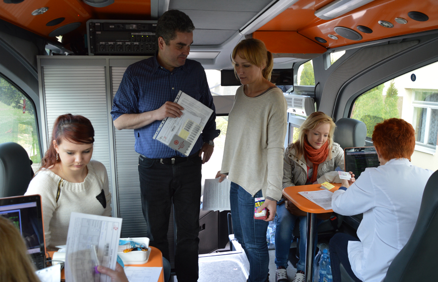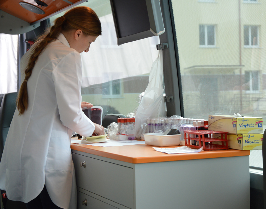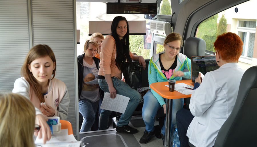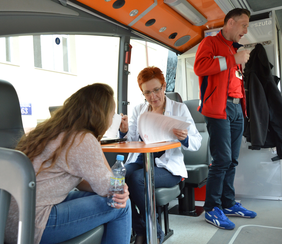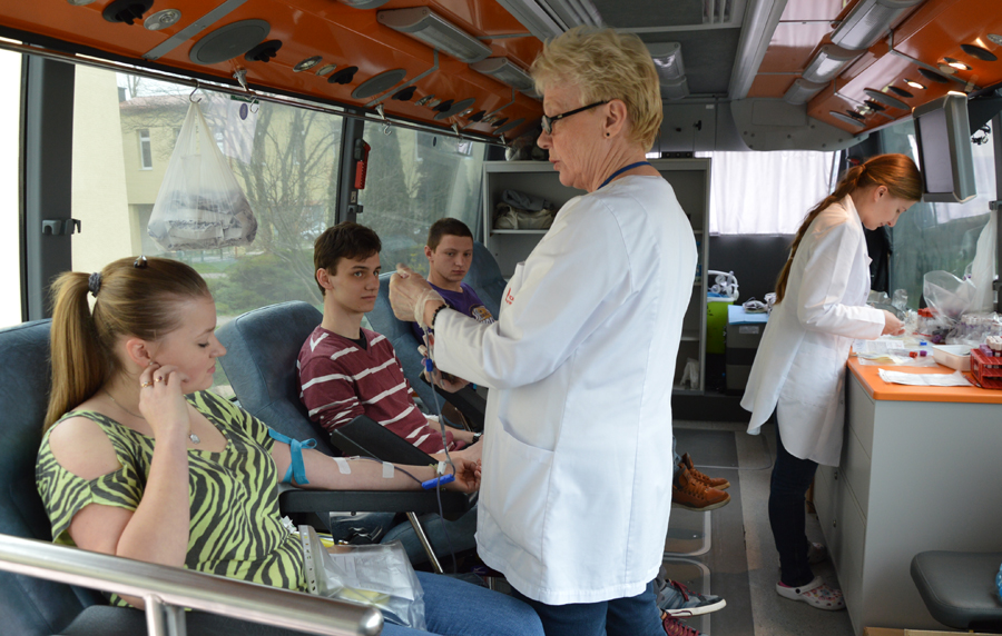 Do rejestracji przystąpiło tym razem 36 osób a oddało krew 21 z nich. Nad bezpieczeństwem wszystkich uczestników czuwał personel z RCKiK. - Zapraszamy osoby powyżej 18. roku, po śniadaniu i dobrze nawodnionych. Najpierw uczniowie wypełnili ankiety i kwestionariusz. Następnie przeprowadzane były podstawowe badania krwi sprawdzające poziom hemoglobiny i uczestnicy poddani byli badaniu lekarskiemu. Jeśli osoba przeszła pomyślnie przez tę weryfikację, to dopiero można było pobrać od niej 450 ml krwi. Organizm to bardzo szybko regeneruje i nienarażony jest na powikłania. Mężczyźni mogą oddawać krew co 8 tygodni, natomiast kobiety co 12 tygodni do 65 roku życia – wyjaśnił lekarz Jarosław Kępski, który diagnozował potencjalnych dawców w ambulansie.