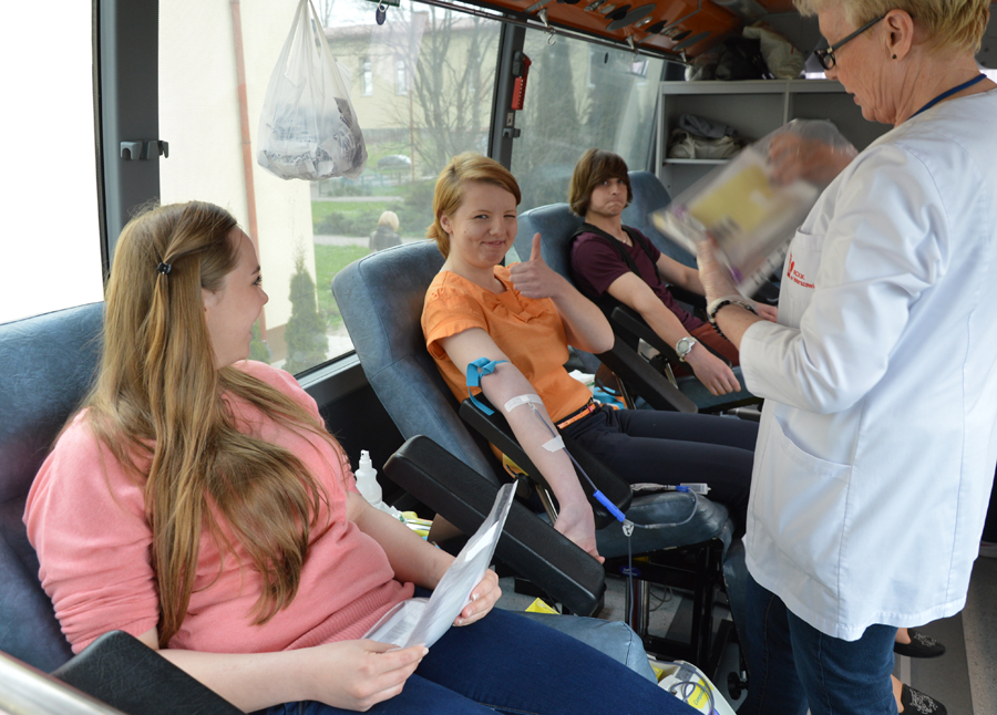 Przystępując po raz pierwszy do akcji, uczniowie zadawali pytania, aby rozwiać wszelkie wątpliwości. - Pierwszy raz oddawałam krew i muszę przyznać, że nie jest to bolesne i trwa bardzo krótko. Nie odczuwałam przy tym żadnych zawrotów głowy, ani nie było omdleń. Mój dziadek też był honorowym dawcą krwi, dlatego chciałabym podtrzymać tę tradycję – podkreśliła Klaudia Wosińska. - Wykonanie takiego gestu nic mnie nie kosztuje, a przecież może się kiedyś zdarzyć, że to mi krew będzie potrzebna. Obsługa było pomocna i wszystko obywało się bardzo sprawnie. Jestem zadowolono, że nie było przeciwskazań i mogłem włączyć się w akcję – zaznaczył Maciej Deperas.