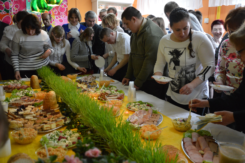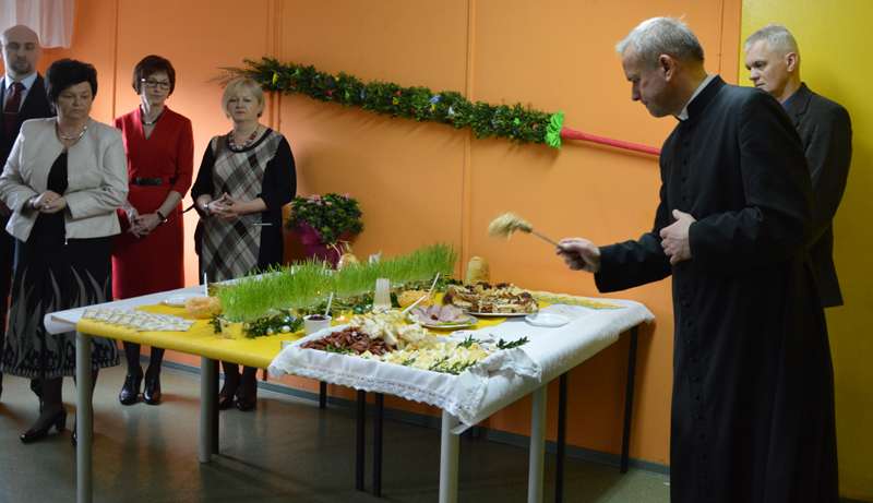 Spotkanie rozpoczęła dyrektor Osińska, witając serdecznie wszystkich gości i dziękując za przybycie. Zgodnie ze świąteczną tradycją przygotowane pokarmy poświęcił proboszcz parafii św. Józefa Robotnika ksiądz Józef Staszewski, który wygłosił Słowo Boże.