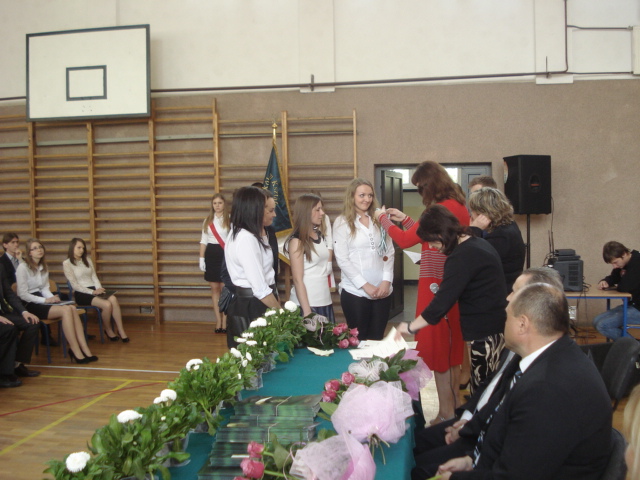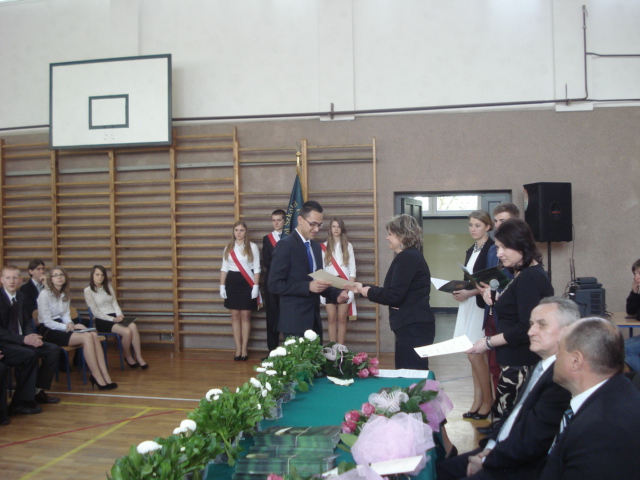 Na uroczystości wręczenia świadectw absolwentom Pani Dyrektor pogratulowała również rodzicom wyróżniających się uczniów oraz tym, którzy pomagali szkole, angażowali się w pracę na rzecz szkoły. Skierowała do nich podziękowania i przekazała listy gratulacyjne.