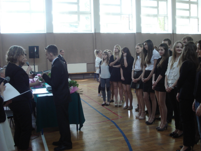 Ci młodsi żegnali swoich starszych kolegów i debiutowali w nowych rolach, to oni przejęli sztandar szkoły - wybrano dwa nowe składy do pełnienia tej honorowej funkcji - oni przygotowali scenariusz uroczystości, którą również prowadzili, wygłosili też pożegnalne przemówienie połączone z życzeniami udanego startu życiowego dla absolwentów.