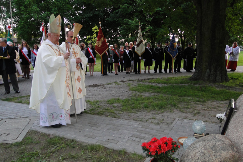 Uroczystość rozpoczęła się mszą świętą koncelebrowaną przez ks. bpa Józefa Zawitkowskiego z Łowicza. Wspólnie z licznie przybyłymi wiernymi modlił się on w intencji 96 osób, które zginęły na pokładzie rządowego samolotu. Podczas nabożeństwa, na którym obecne były poczty sztandarowe szkół z terenu parafii, Ochotniczej Straży Pożarnej z Niepokalanowa i Paprotni oraz wspólnot parafialnych, wystąpił chór z orkiestrą parafialną.