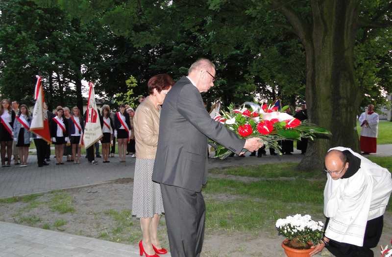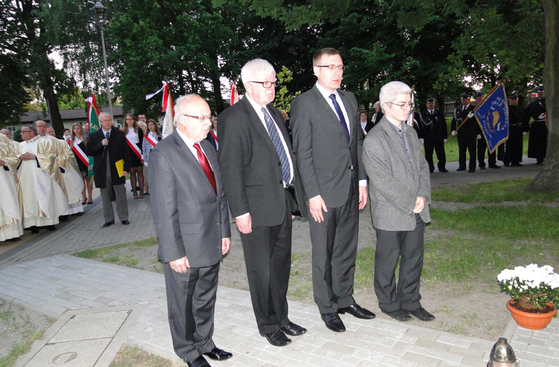 Przybyłe delegacje złożyły kwiaty pod odsłonięta tablicą. W uroczystości uczestniczyli między innymi Maciej Małecki, poseł RP, Marek Olechowski, wójt gminy Teresin, Marek Jaworski, zastępca wójta, Bogdan Linard, przewodniczący Rady Gminy Teresin.