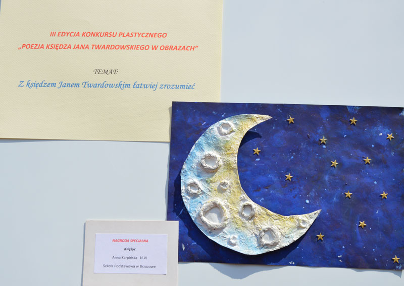 Konkurs pod patronatem Starostwa Powiatowego w Sochaczewie, które ufundowało nagrody na laureatów, skierowany był do szkół podstawowych. W tym roku udział w nim wzięli uczniowie z 9 szkół podstawowych powiatu sochaczewskiego, którzy przesłali w sumie 106 prac wykonanych w dowolnej technice. Ich zadaniem było zilustrować wybrane opowiadanie ks. Twardowskiego. Jury oceniało prace w czterech kategoriach wiekowych: klasa I, klasa II, klasa III, klasy IV – VI. Wyniki prezentujemy poniżej. Laureaci otrzymali nagrody z rąk Barbary Derdy oraz wicestarosty Janusza Ciury, który reprezentował samorząd powiatowy. W tym roku po raz pierwszy przyznano Nagrodę Specjalną Dyrektor Szkoły, którą zdobyła Anna Karpińska, uczennica klasy VI ze szkoły w Brzozowie. Najlepsze prace można było oglądać podczas pikniku.