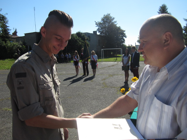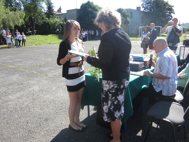 Dyrektor Julia Jakubowska wyróżniającym się uczniom składała gratulacje i wręczała nagrody książkowe ufundowane przez Radę Rodziców – była to imponująca grupa kilkudziesięciu osób! Wśród nagrodzonych znaleźli się też uczniowie osiągający sukcesy sportowe, realizujący swoje pasje czy pracujący jako wolontariusze. Koledzy brawami nagradzali ich za sukcesy, pracowitość i niezwykły hart ducha. Koniec roku to czas podsumowań i doceniania najlepszych. Ci, którzy mieli najwyższe średnie w różnych typach szkół zostali wyróżnieni przez Starostwo Powiatowe w Sochaczewie, w którego imieniu nagrody książkowe wręczał dyrektor Wydziału Promocji Kultury Sportu i Turystyki Marcin Podsędek, życząc wszystkim uczniom udanych i bezpiecznych wakacji. Najlepsi otrzymali świadectwa z paskiem, a uczniowie Marta Czekalska – Liceum Ogólnokształcące - i Hubert Adamczyk - Technikum - po raz kolejny zostali wytypowani do stypendium Prezesa Rady Ministrów - osiągnęli średnią ocen powyżej pięciu! Na tym poziomie edukacji wymaga to wyjątkowej pracy.