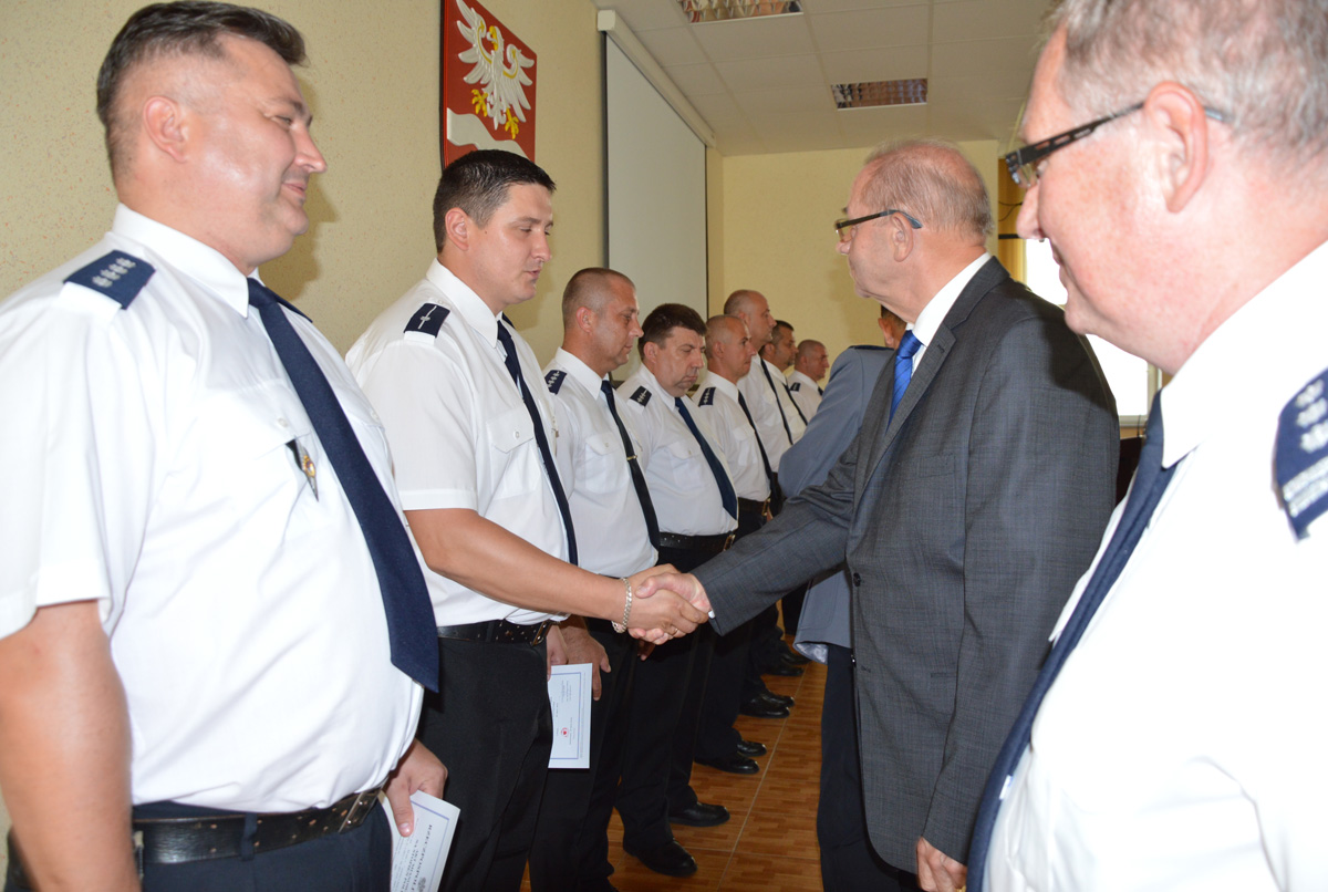 Drugą część uroczystości wypełniły gratulacje i życzenia składane przez licznie przybyłych gości. W pierwszej kolejności głos zabrał Tadeusz Koryś. – Policja jest formacją niezwykle ważną. Stoi na straży praworządności, porządku i bezpieczeństwa obywateli. Za to należą się Państwu słowa uznania i szacunku oraz podziękowania. Życzę Państwu dobrego zdrowia, bezpiecznych powrotów do domu i najbliższych oraz satysfakcji z pełnionej służby – mówił starosta T. Koryś, a Halina Pędziejewska, przewodnicząca Rady Powiatu, odczytała list gratulacyjny, złożony później na ręce komendanta Janusza Patury.