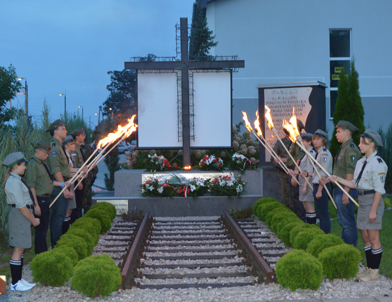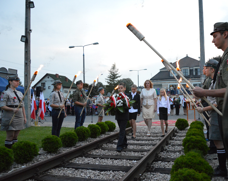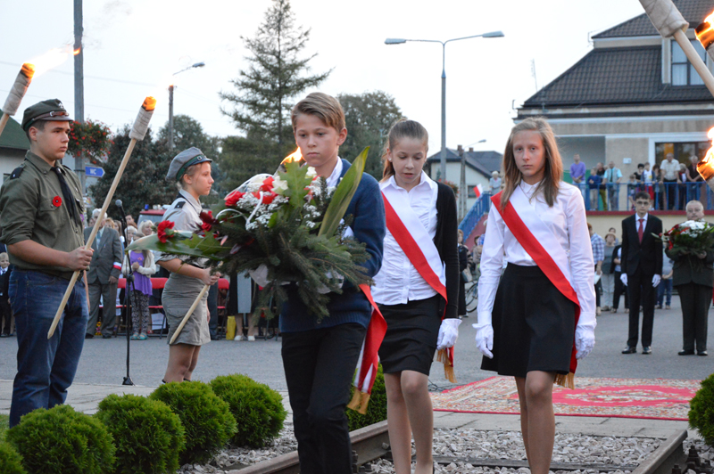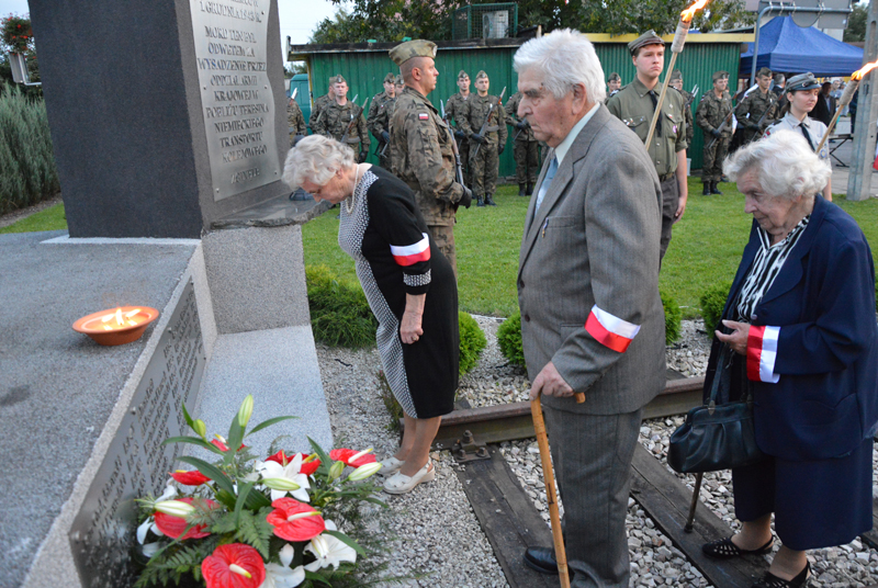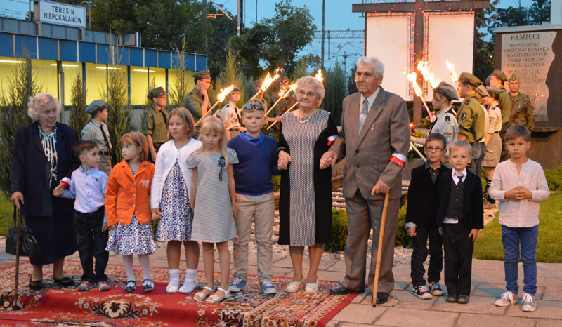 Szpalerem płonących pochodni utworzonym przez miejscowych harcerzy kroczyły delegacje kombatantów, dzieci i młodzieży wraz z nauczycielami ze szkół z terenu gminy, strażaków, samorządowe – powiat reprezentował starosta Tadeusz Koryś i Bogdan Linard, przewodniczący Rady Gminy Teresin. W hołdzie ofiarom II wojny światowej złożyli kwiaty pod pomnikiem.