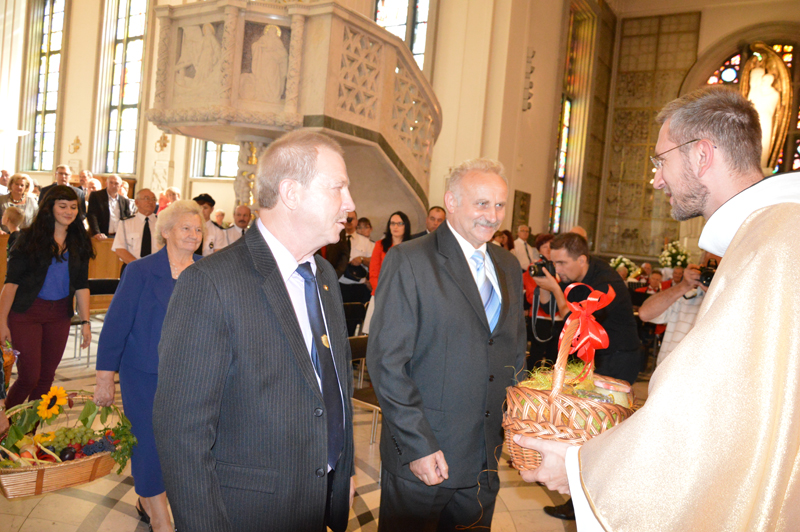 W mszy udział wzięli przedstawiciele organizacji i instytucji rolniczych, a także władz samorządowych na czele z gospodarzami dożynek – Tadeuszem Korysiem, starostą powiatu sochaczewskiego, i Markiem Olechowskim, wójtem gminy Teresin. Oczywiście licznie przybyli rolnicy, by dziękować za upływający rok i prosić o błogosławieństwo na nadchodzący. Piękne wieńce i dary ofiarne w postaci kwiatów, chleba, owoców, warzyw, miodów, nalewek, paschału z wosku pszczelego, żywności, przetworów owocowo-warzywnych oraz wypieków na ołtarzu złożyli przedstawiciele wszystkich gmin.