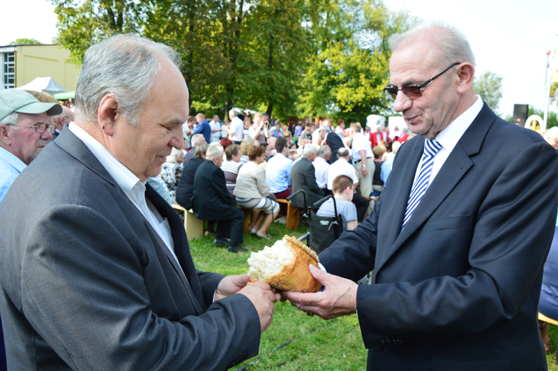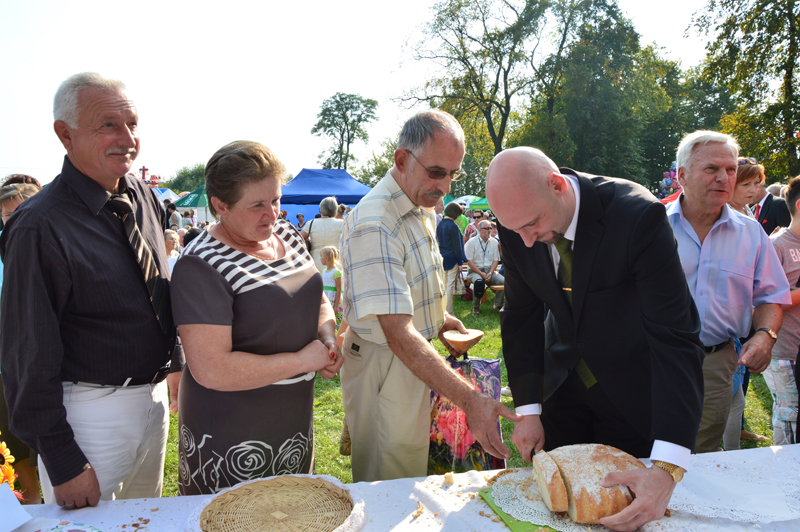 Starosta Tadeusz Koryś, przypominając, że dożynki są jednym z najpiękniej obchodzonych staropolskich obrzędów ludowych, od wieków zakorzenionych w naszej tradycji, podziękował rolnikom za pracę ich rąk, z której owoców wszyscy chętnie korzystamy, wszystkim zaś za udział w mszy dziękczynnej. Życzył także dobrej zabawy i miło spędzonego czasu podczas mniej oficjalnej części obchodów dożynkowych.