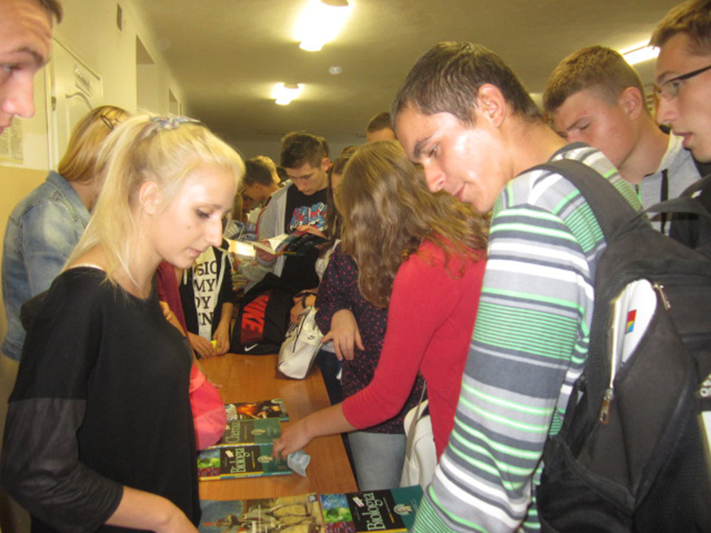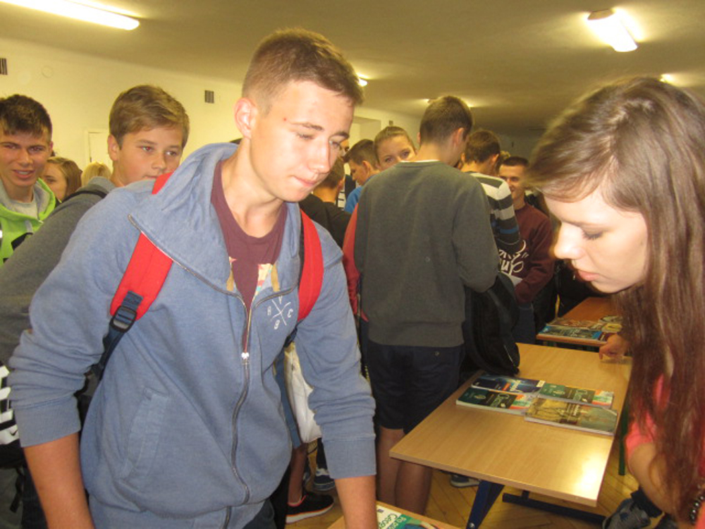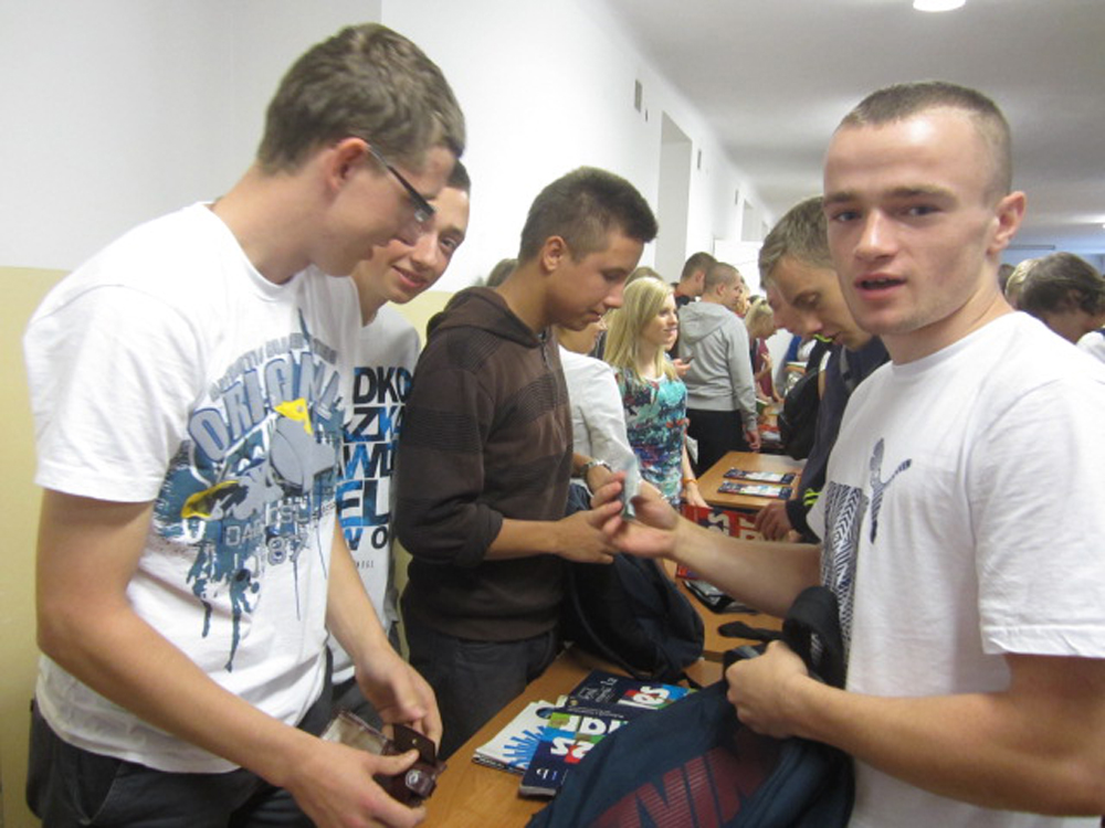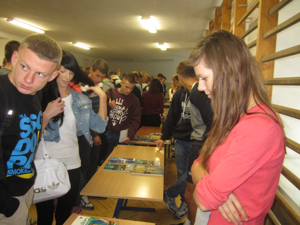 Sala gimnastyczna pękała w szwach, w końcu ZS CKP to największa szkoła w powiecie - około 840 uczniów - 34 oddziały dzienne i jeden oddział Technikum Uzupełniającego. Klasy pierwsze to ponad 250 uczniów - 2 Liceum Ogólnokształcącego, 4 Technikum i 3 Zasadniczej Szkoły Zawodowej. Nic więc dziwnego, że podręczniki znikały ze stołów jak świeże bułeczki, tym bardziej, że ich ceny zdecydowanie konkurowały z cenami nowych. Właśnie! Uczniowie narzekają i nie bez powodu, że książki są bardzo drogie. Np. podręcznik do polskiego kosztuje około 30 złotych, ale jeśli porównamy go z angielskim to możemy powiedzieć, że jest tani. Za podręcznik do nauki języka angielskiego trzeba zapłacić 70 zł i więcej, za niektóre nawet 100 złotych.