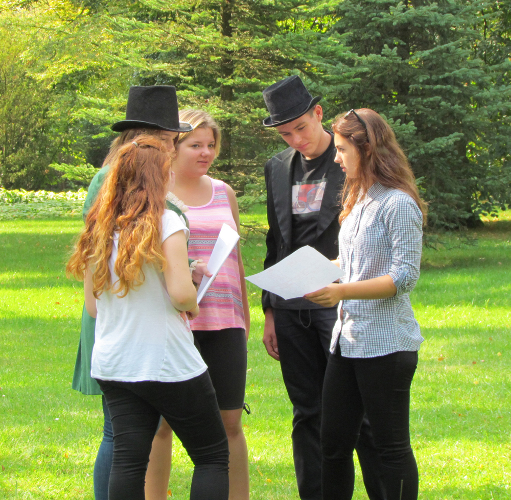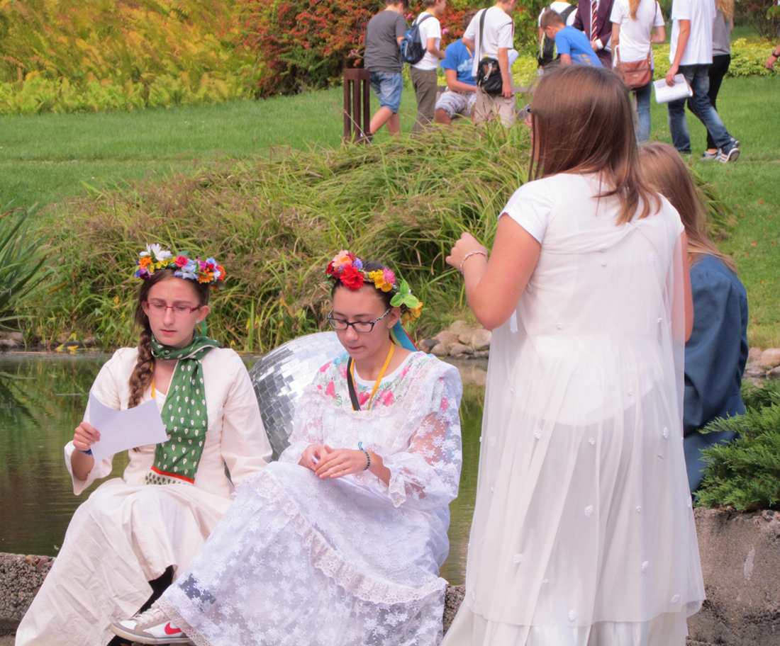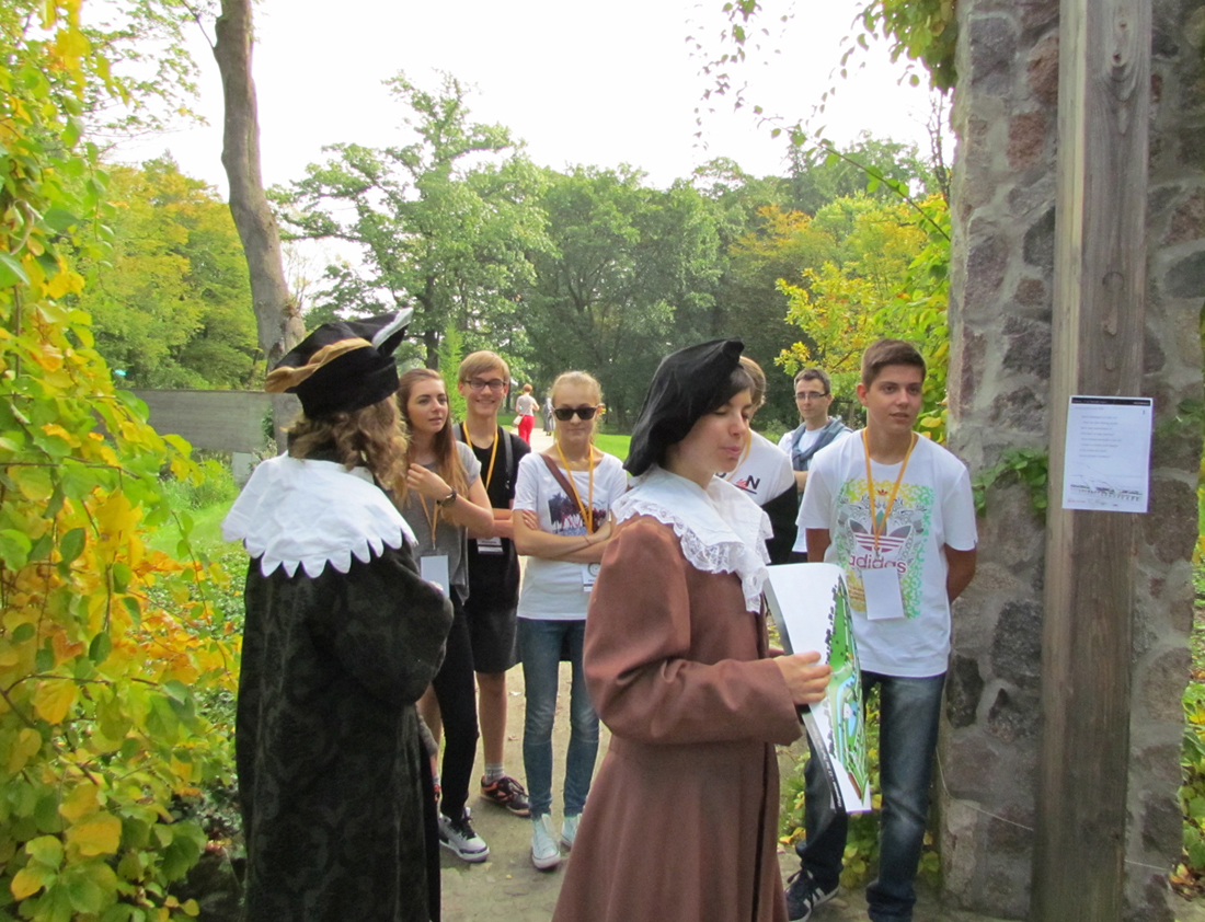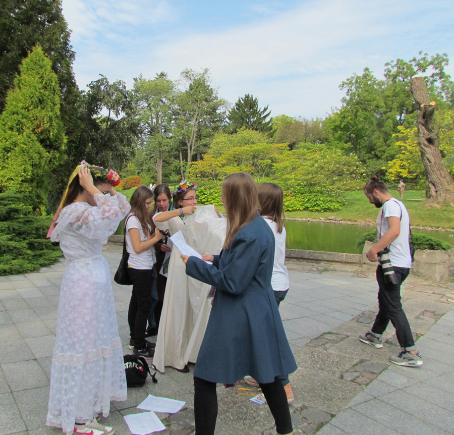 Spotkaliśmy się na terenie parku w Żelazowej Woli. Podzieleni na zespoły, wyposażeni w mapy satelitarne i identyfikatory Instytutu Naprawy Historii, wyruszyliśmy na poszukiwanie osób mających wpływ na tworzenie ballad. Na swej drodze spotkaliśmy Adama Mickiewicza, Fryderyka Chopina, Boba Dylana i Jacka Kaczmarskiego. W kości zagraliśmy ze Strażnikiem Czasu. Wśród zadań do wykonania znalazło się napisanie i zaśpiewanie ballady, zbudowanie instrumentu, nakręcenie filmu, a przede wszystkim stworzenie fotokomiksu. Mogliśmy wykorzystać różnorodne rekwizyty, stroje z epoki, a przede wszystkim własną wyobraźnię. A tej mieliśmy pod dostatkiem. Kreatywność, wiedza, wyobraźnia, poczucie humoru pozwoliły zespołowi z klasy Ie zająć III miejsce, a zespołowi z klasy IIa zwycięskie I miejsce. Ale to nie koniec gry!!! Fotokomiksy wykonane przez zespoły, które zdobyły I i II miejsce w swojej grupie będą oceniane w celu wytypowania zwycięzcy całej gry. Najpóźniej 24 września poznamy ostateczne wyniki. I to jeszcze nie koniec! Pięć najwyżej punktowanych komiksów zostanie zamieszczonych na fanpage’u Głównego Organizatora Konkursu i poddane głosowaniu otwartemu dla wszystkich użytkowników portalu Facebook.