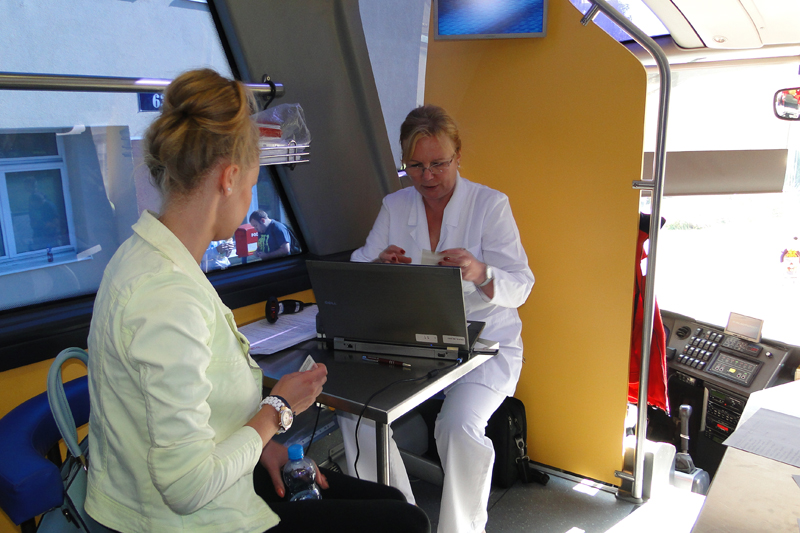 Potencjalni dawcy w pierwszej kolejności byli rejestrowani, a następnie wypełniali kwestionariusz dotyczący ich zdrowia. W dalszej kolejności poddawani byli badaniu hemoglobiny, po którym lekarz przeprowadzał krótki wywiad i podstawowe badanie lekarskie. Pomyśle przejście procedur umożliwiało oddanie krwi.