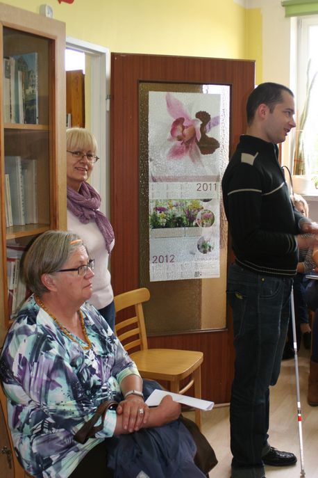 Na początku warsztatów prowadzący opowiedział nieco o sobie. Okazało się, że mimo swojej niepełnosprawności ma pogodne usposobienie i ciekawe życie, którego mógłby mu pozazdrościć niejeden człowiek pełnosprawny. Wspólnie z żoną prowadzi założoną przez siebie fundację „OCZY SERCA”. Celem fundacji jest pomoc osobom niepełnosprawnym, chorym i edukacja społeczeństwa w tym zakresie.