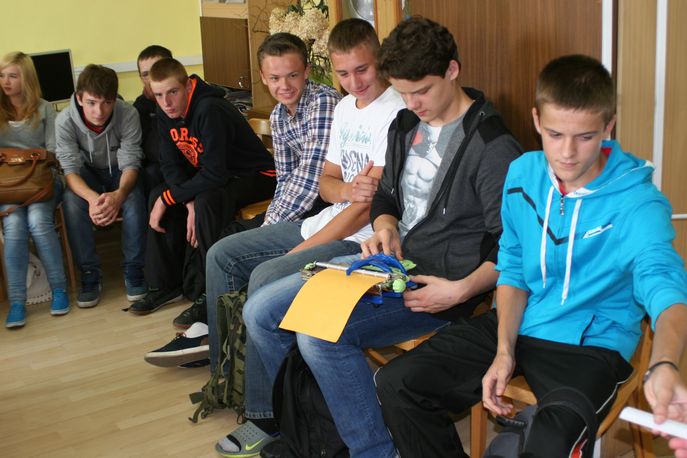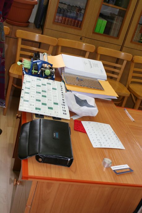 Pan Grzegorz przedstawił postać Louisa Braille’a oraz wyjaśnił podstawowe zasady alfabetu Braille’a. Zaprezentował maszynę i tabliczkę do pisania w tym alfabecie. Następnie uczestnicy ćwiczyli rozpoznawanie liter oraz pisanie za pomocą wymienionych narzędzi. Uczniowie w sposób praktyczny zapoznali się z innymi przedmiotami codziennego użytku dostosowanymi do potrzeb osoby niewidomej. Należały do nich między innymi: linijka i centymetr z wytłoczonymi co 5 mm odległościami, szablony do składania urzędowych podpisów i rozpoznawania nominałów banknotów, szachy, scrabble i karty do gry.
