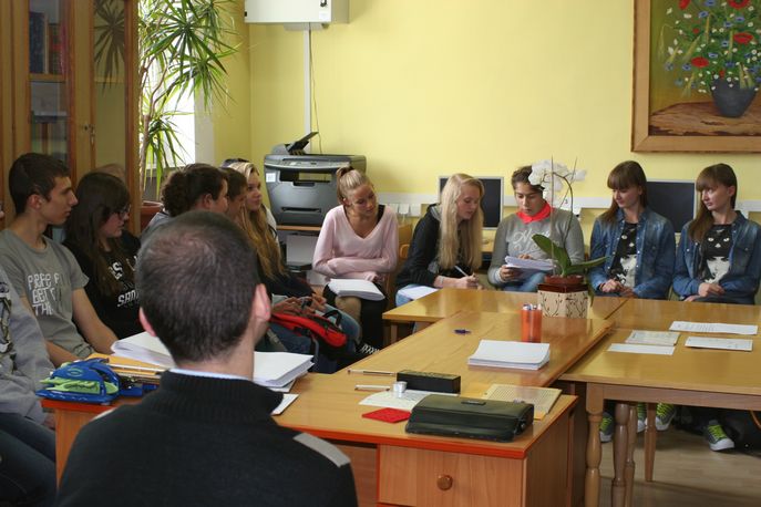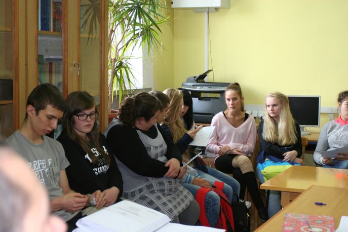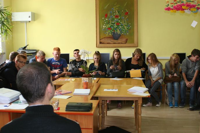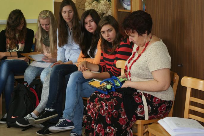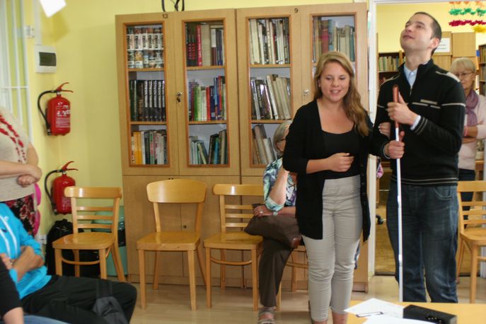 Prowadzący zwrócił uwagę młodzieży, że nie należy bać się pomagać osobom niewidomym i słabowidzącym. Ważna jest komunikacja, aby dowiedzieć się, czy napotkany niepełnosprawny rzeczywiście potrzebuje pomocy i w jakim zakresie. Zdarza się bowiem, że niewidomi mają problemy nie tylko z brakiem pomocy, ale także z jej niewłaściwymi formami. Pan Grzegorz w ciekawy sposób zilustrował te problemy. Prosił młodzież o odgrywanie codziennych sytuacji, w których uczestnikami są osoby niewidome lub słabowidzące. Następnie te sytuacje były omawiane przez grupę. Obserwacja oraz odgrywanie scenek z życia osoby niewidomej wyraźnie skłoniły młodzież do refleksji. Podczas dyskusji z prowadzącym uczniowie wymieniali poglądy na temat postaw społecznych wobec osób niepełnosprawnych. Panu Grzegorzowi na pewno udało się uświadomić uczestnikom warsztatów, że osoby niewidome i słabowidzące, mimo swoich ograniczeń wynikających ze stanu zdrowia, są pełnoprawnymi członkami społeczeństwa.