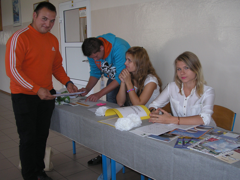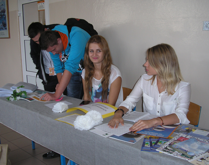 Podczas dużej przerwy wolontariusze z „Klubu Ośmiu” naszej szkoły prezentowali książki pisane alfabetem L. Braille’a, ulotki dotyczące pomocy osobom niewidomym, czasopisma przeznaczone specjalnie dla niewidomych. Największym wyzwaniem dla młodzieży był konkurs czytania alfabetem Braille’a. Przystępujący do konkursu musieli odczytać cytat napisany tym alfabetem. Dzięki uprzejmości Wydziału Promocji Starostwa Powiatowego finaliści otrzymali interesujące nagrody. Pierwsze miejsce zdobyła Ewa Bugaj z klasy 2 TŻa, drugie miejsce Mateusz Stępień z 2 TŻa i trzecie miejsce Angelika Lebioda z 1 TŻb.
