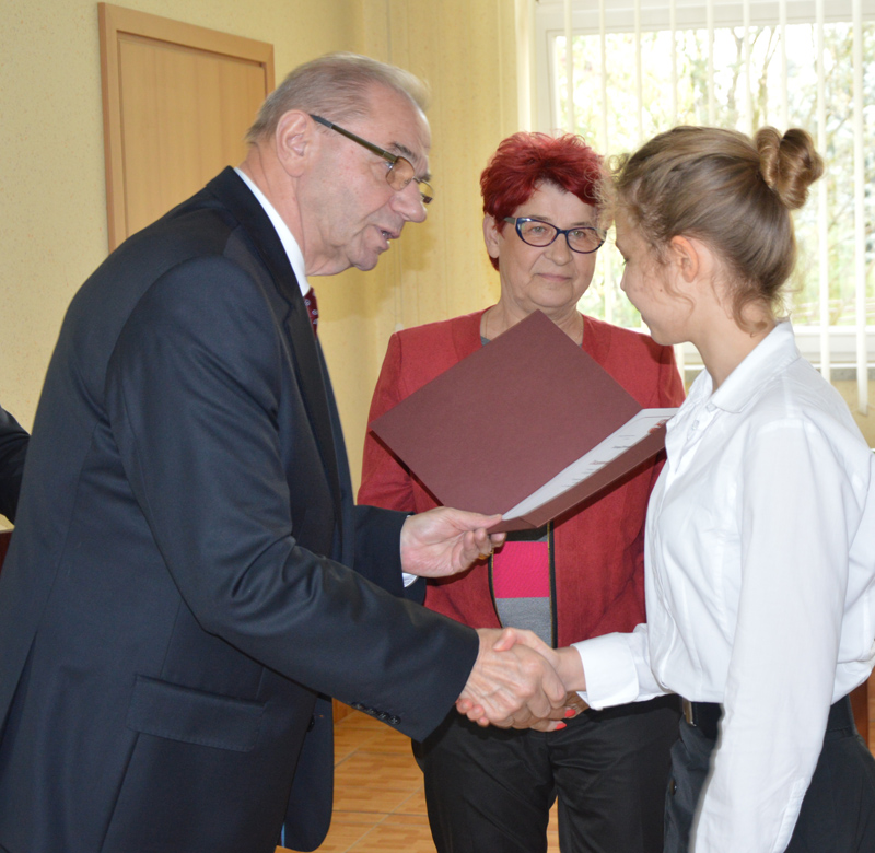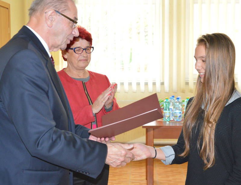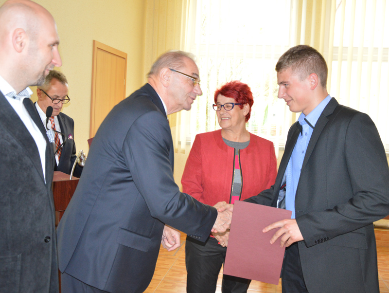 W spotkaniu udział wzięli także: Janusz Ciura, wicestarosta, przewodniczący komisji stypendialnej, Jolanta Popiołek, wiceprzewodnicząca Rady Powiatu, oraz członek Zarządu Powiatu Przemysław Gaik. Spotkanie poprowadził Bogusław Bęzel, dyrektor Powiatowego Zespołu Edukacji.