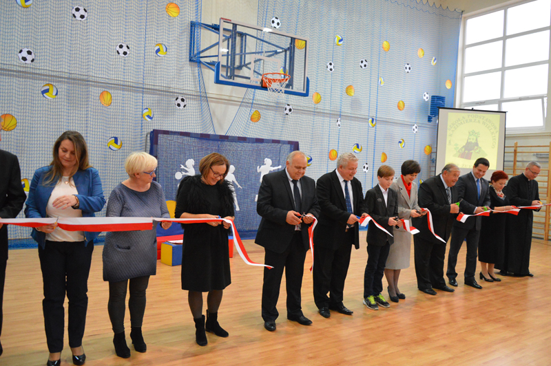 Jak podkreślano podczas uroczystego otwarcia sali, do jej budowy przyczyniło się wiele osób. Słowa podziękowania kierowane były m.in. do wójta gminy Mirosława Orlińskiego, pracowników Urzędu Gminy oraz całej Rady Gminy. Poświęcenia obiektu dokonał dziekan ks. Józef Staszewski, nie mogło też zabraknąć uroczystego przecięcia wstęgi. Były życzenia, gratulacje i prezenty, m.in. od samorządowców czy dyrektorów zaprzyjaźnionych szkół. Głos zabrał także starosta Tadeusz Koryś. - W tym wyjątkowym dniu otwarcia nowej sali gimnastycznej całej społeczności szkolnej, składam serdeczne gratulacje. Gronu pedagogicznemu, dziękując za pracę, która wzbogaca wiedzę młodego pokolenia i formuje postawy oraz wzorce społeczne, składam życzenia, by wysiłek propagowania wśród dzieci i młodzieży sportu powszechnego oraz idei aktywności fizycznej przyniósł satysfakcję i poczucie spełnienia – mówił podczas swego wystąpienia starosta. Uczniom szkoły zaś życzył, aby nowa sala dobrze służyła i stała się miejscem rozbudzania sportowego ducha, a także sportowych osiągnięć i sukcesów, które i tak już plasują szkołę na wysokich miejscach w powiecie.